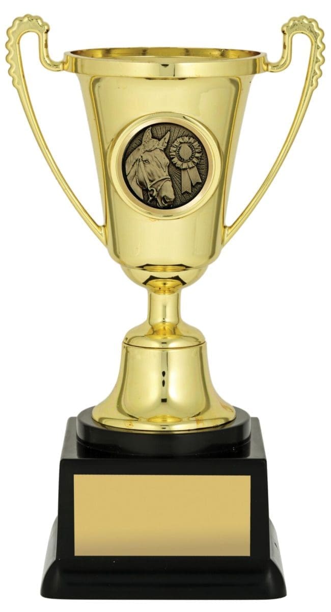 Charming trophy cup series in 3 convenient sizes features elegant black base for your engraving. Inserts available for all sports and activities – consider a custom option for your order. FastFix application for ease of use.