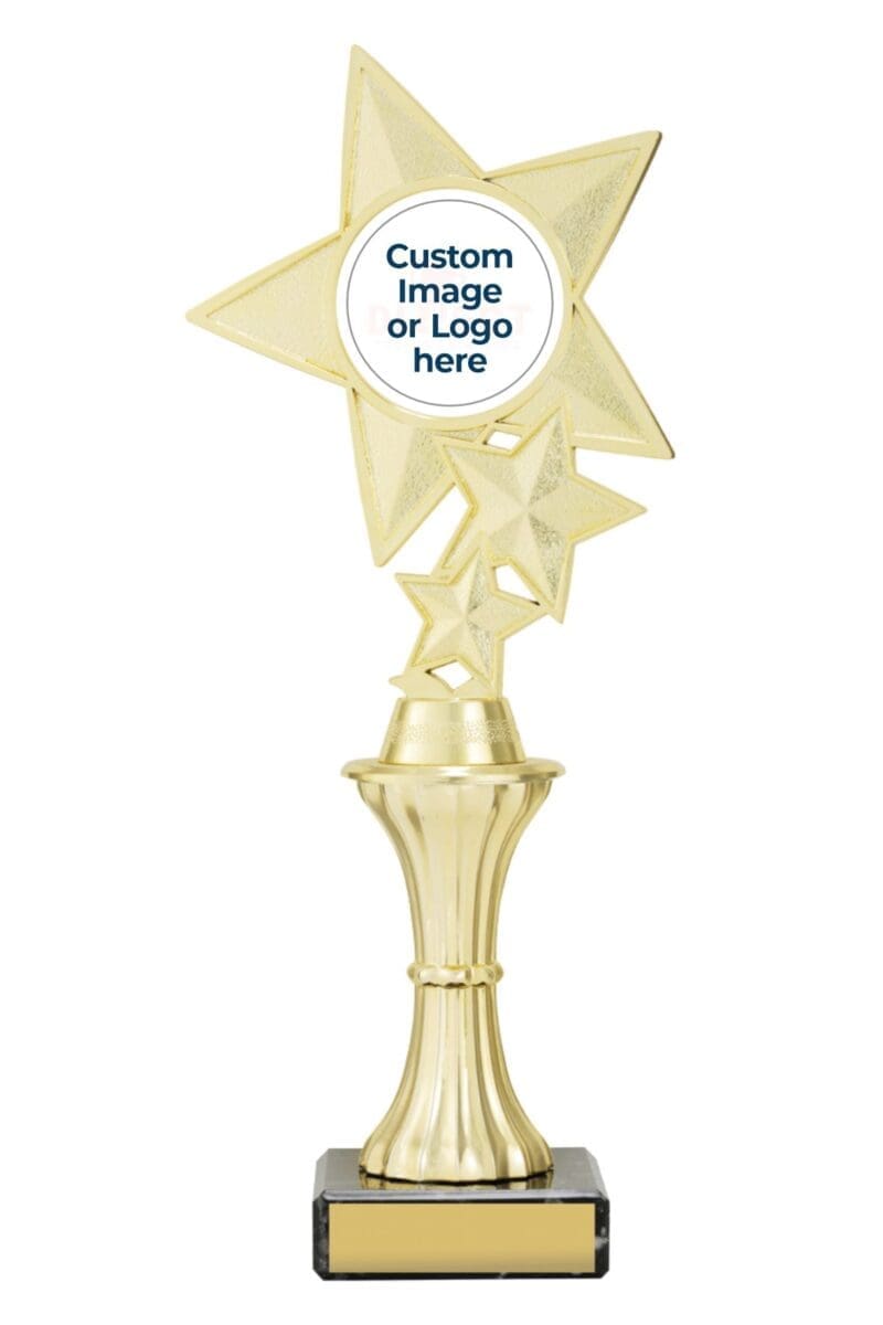 Hourglass Grand Star Trophy suitable for any event or occasion. Complimentary colour printed logo or image can be showcased on this award with free engraving on base of trophy.