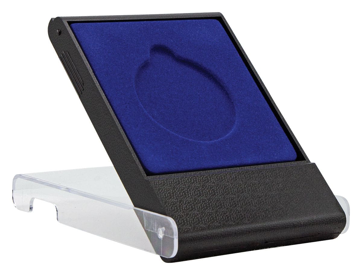 Discover the Indiclear Small Medal Case, an elegant solution for your 50mm medals. This sleek black box features a blue felt inlay and a clear outer case, allowing you to proudly showcase your medals.