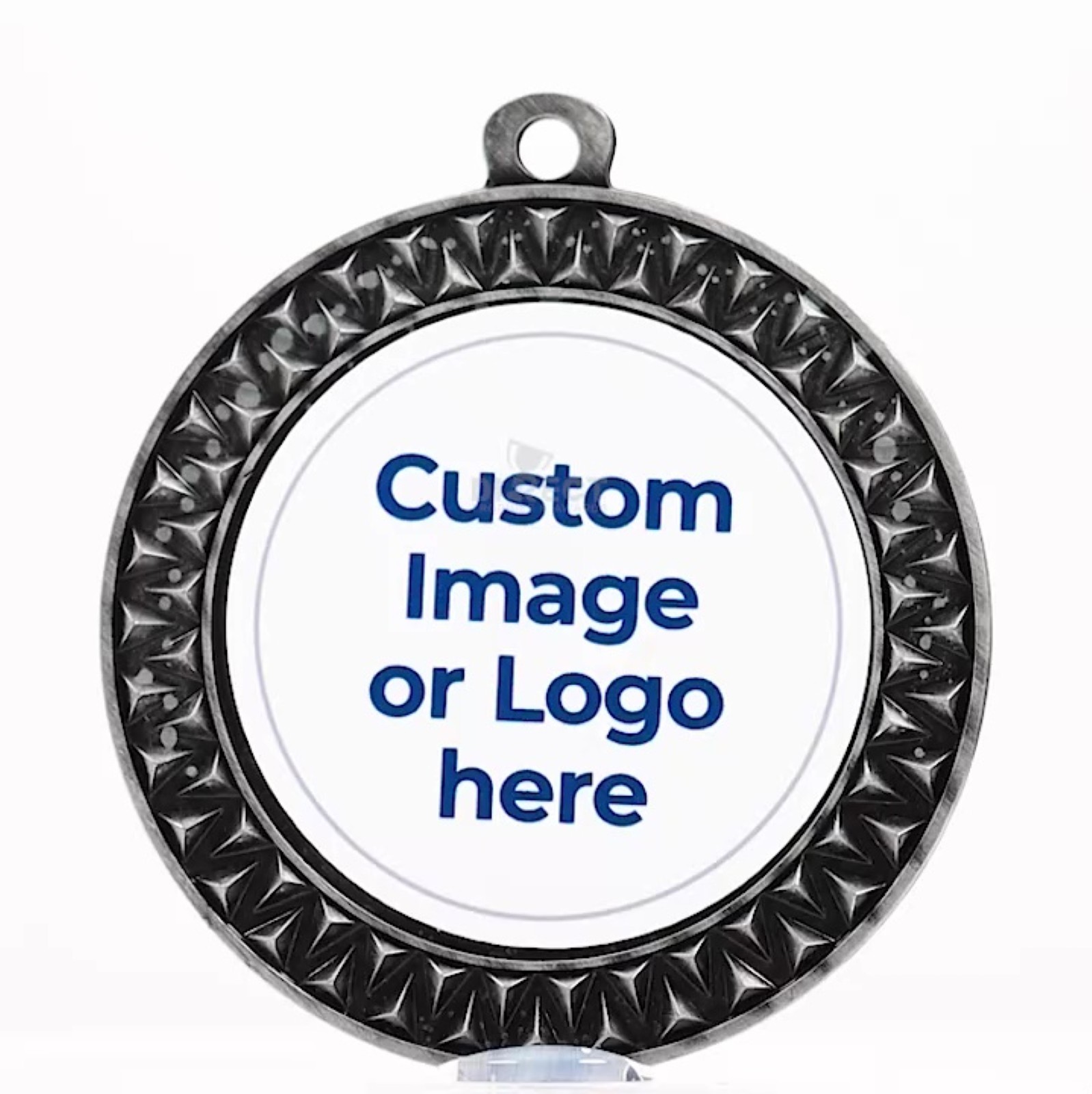 Klyzor Medal – A standout design with raised detailing, the Klyzor Medal features a centre to display your custom image or logo. Includes space for back engraving, with ribbon colours and medal boxes available to suit any presentation.