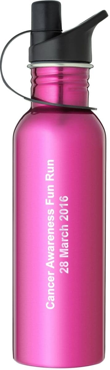 Laserable water bottle in 2 sizes, standard design and in vibrant pink colour. The bottle is designed specifically for laser engraving. An affordable and effective alternative to a traditional trophy and award option.
