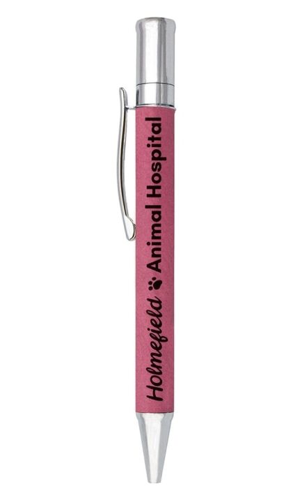 The diverse range of leatherette products offer different options for your engravable gift item. Leatherette allows for an affordable medium and durable engraving results. Single pen in rawhide colour and chrome trim finish.