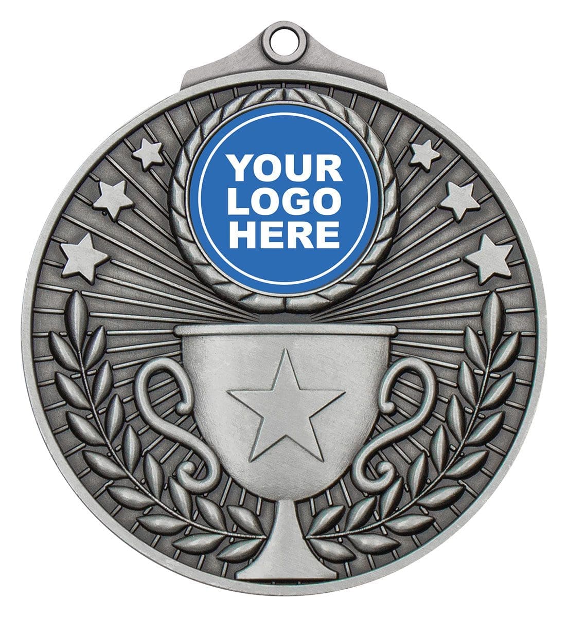 Outstanding cup inspired medal presents larger than standard size with space for your custom logo.