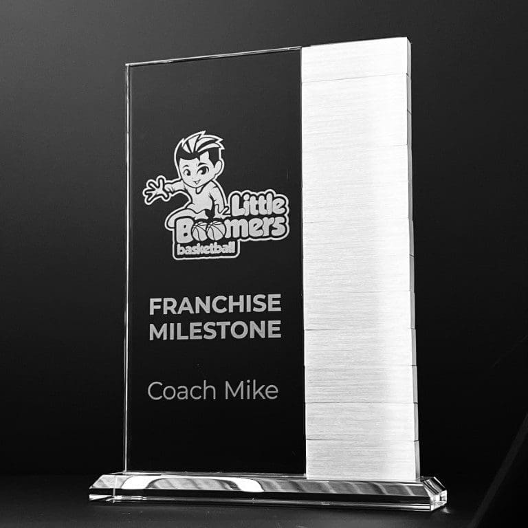 An excellent perpetual award option to record the recurring achievements of your employees and personnel. The Legacy Landmark provides an innovative glass and metal design – 12 metal attachments that can be replenished as needed as the lifetime of the award progresses. You can purchase metal attachments separately. Width of glass provided in the additional information.