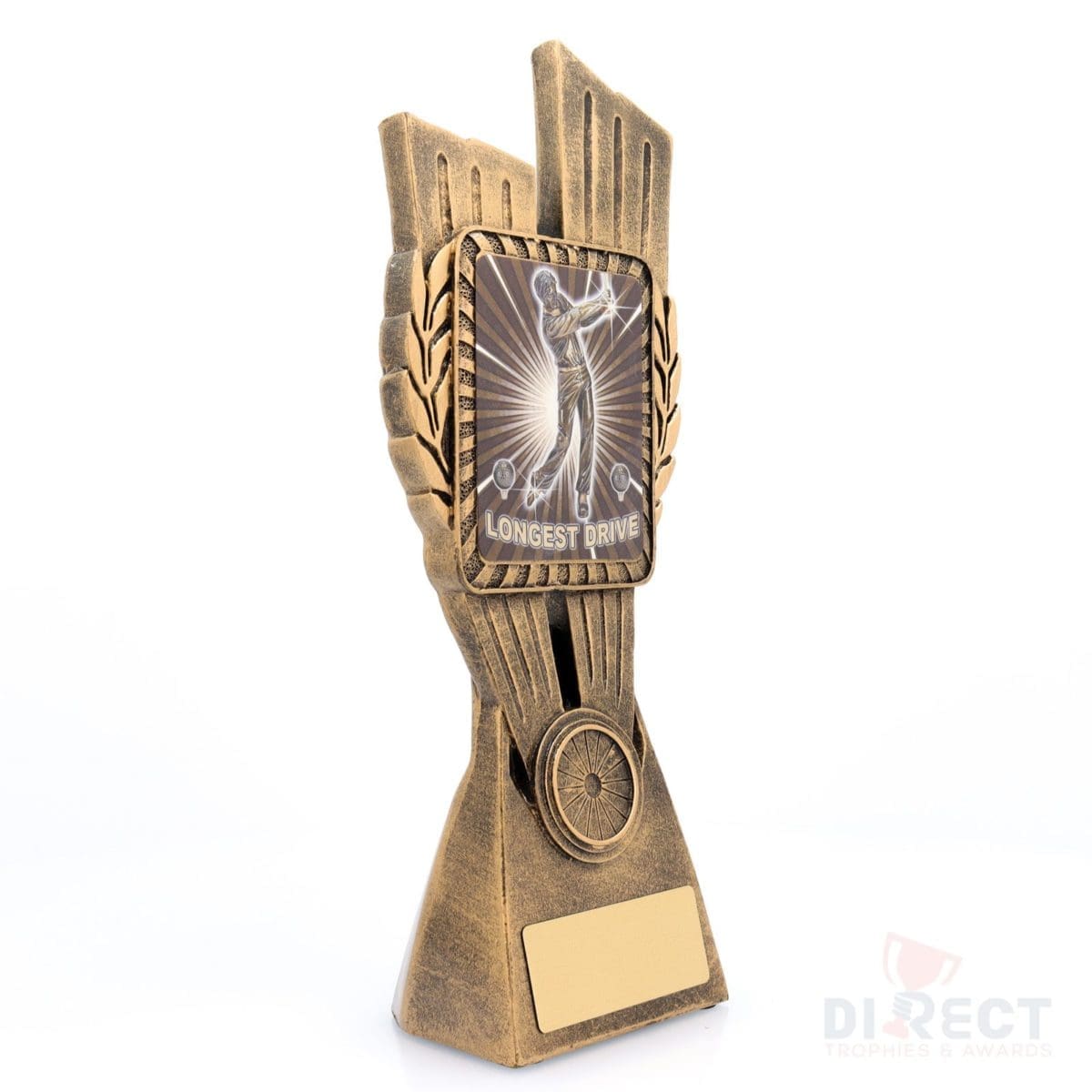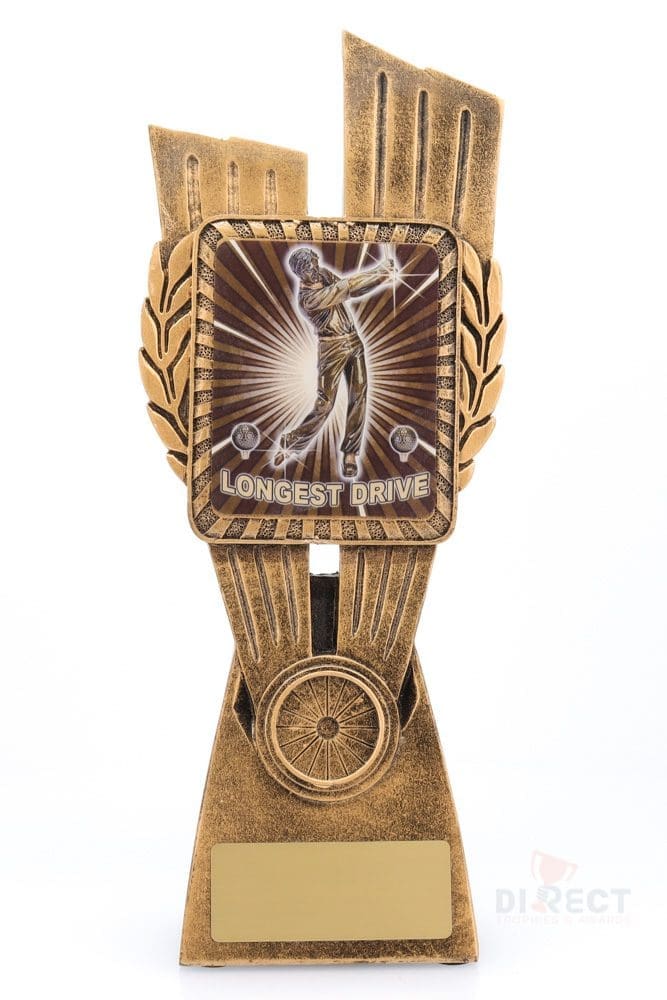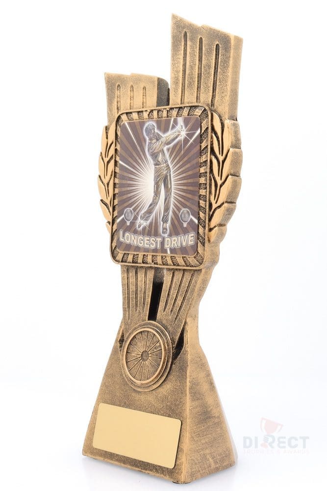 This Antique Gold Lynx Trophy is the perfect award for Longest Drive competitions at your golfing event. Featuring a classic wreath and vibrant design, Golf trophies are customisable and available in 4 impressive sizes.