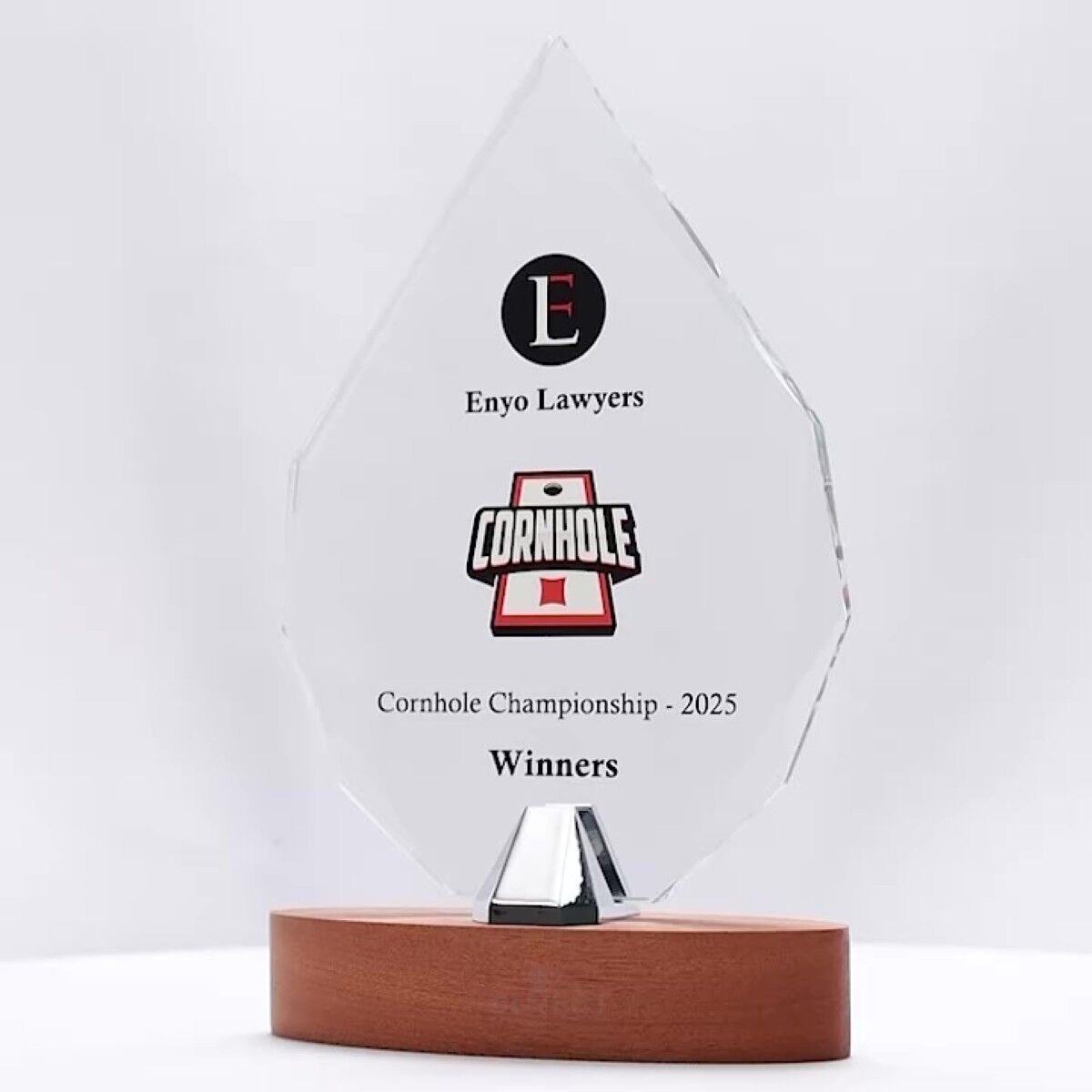 The Lucent Glass Trophy Series blends contemporary elegance with classic craftsmanship, featuring clear glass paired with a rich timber base. This distinguished award is perfect for honouring outstanding employees or exemplary leaders. Supplied in a presentation box and personalised with full colour print.