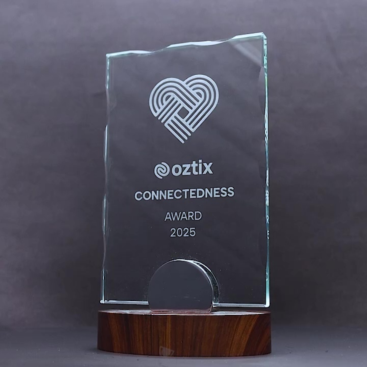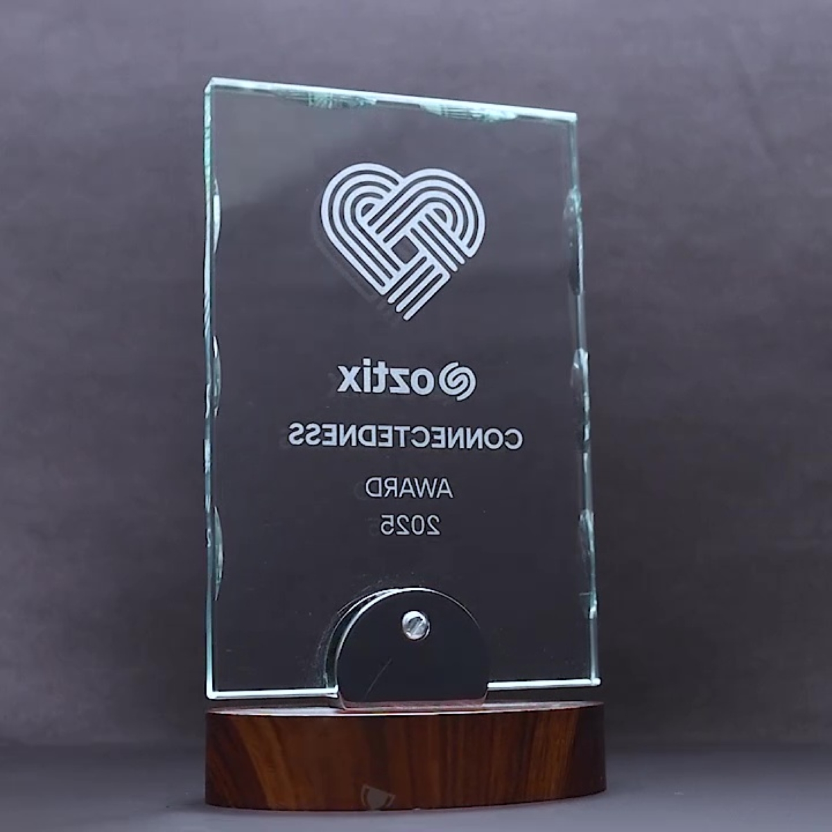 Blends contemporary elegance with classic craftsmanship, featuring clear glass paired with a rich timber base. This distinguished award is perfect for honouring outstanding employees or exemplary leaders. Supplied in a presentation box and personalised with laser engraving.