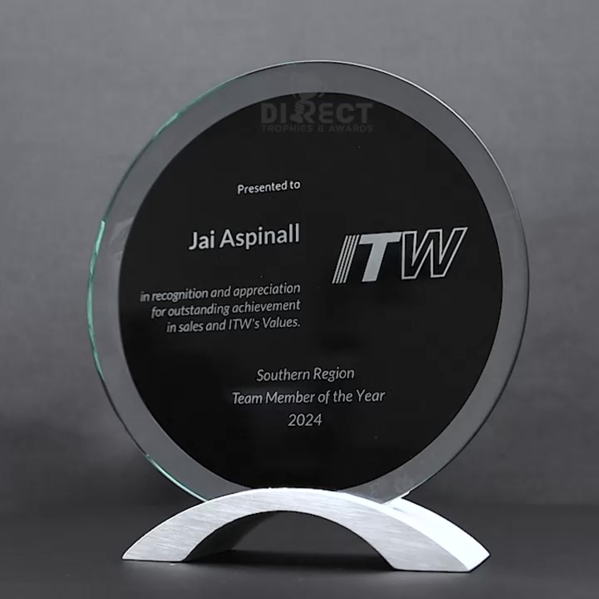The sophisticated Luminary glass & metal award features an inner circle of black panel for your engraving within the larger design of clear glass.