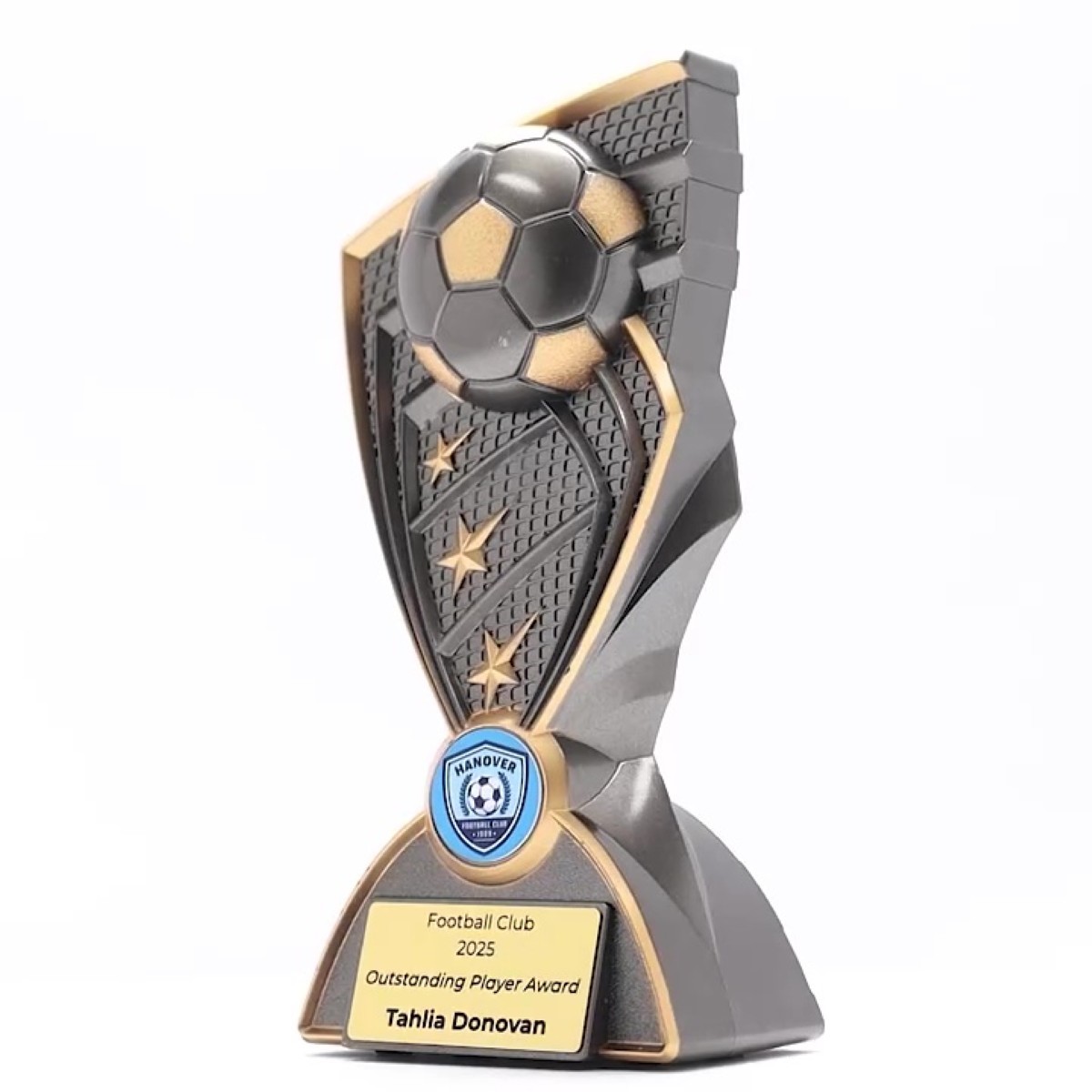 Lustara Series – The Lustara Series showcases an iconic ball design encased with football boots—perfect for celebrating sporting achievements. Includes space for your custom logo or image, available in multiple sizes with complimentary laser engravin