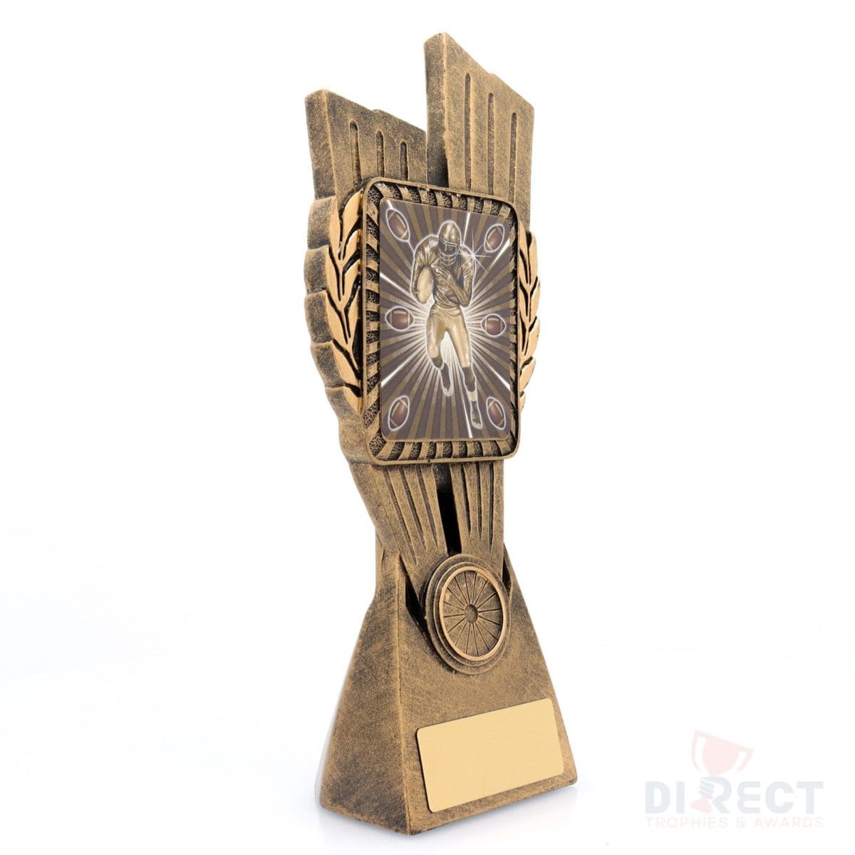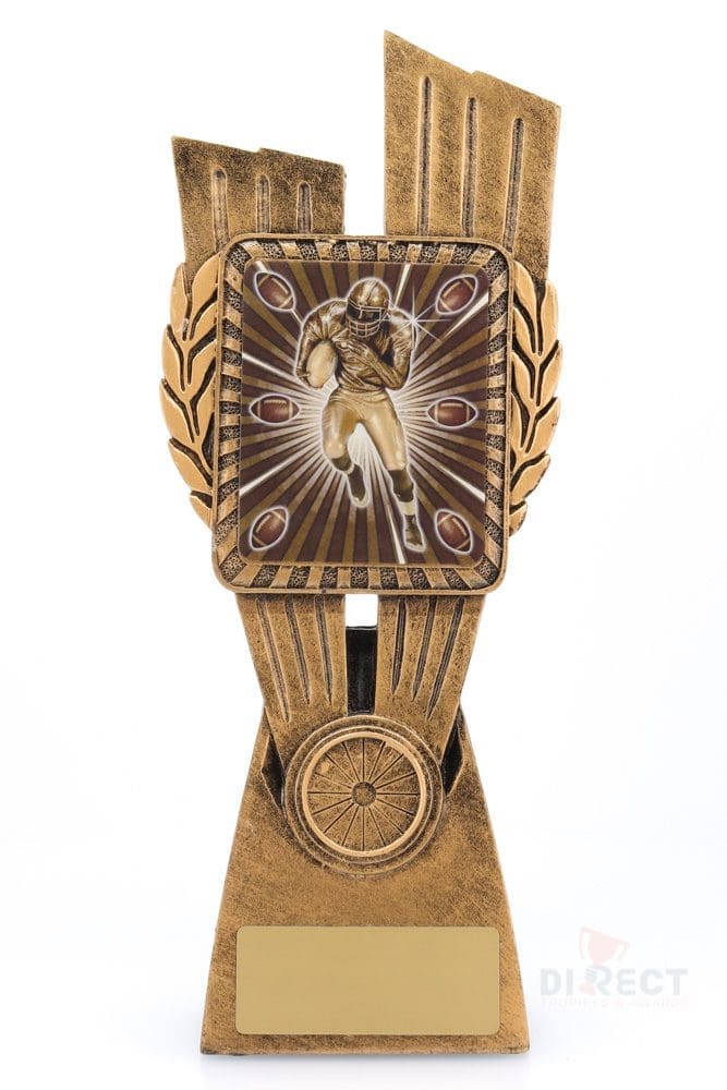 This Antique Gold Lynx Trophy is the perfect theme award for American Football teams and clubs. Featuring a classic wreath and vibrant design, American Football trophies are customisable and available in 4 impressive sizes.