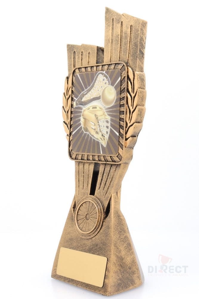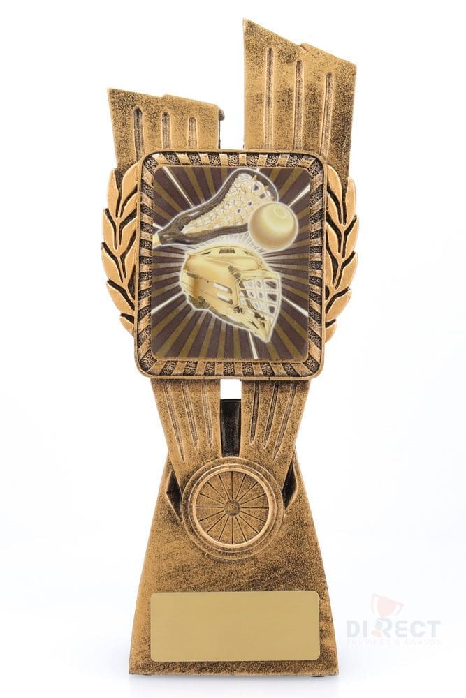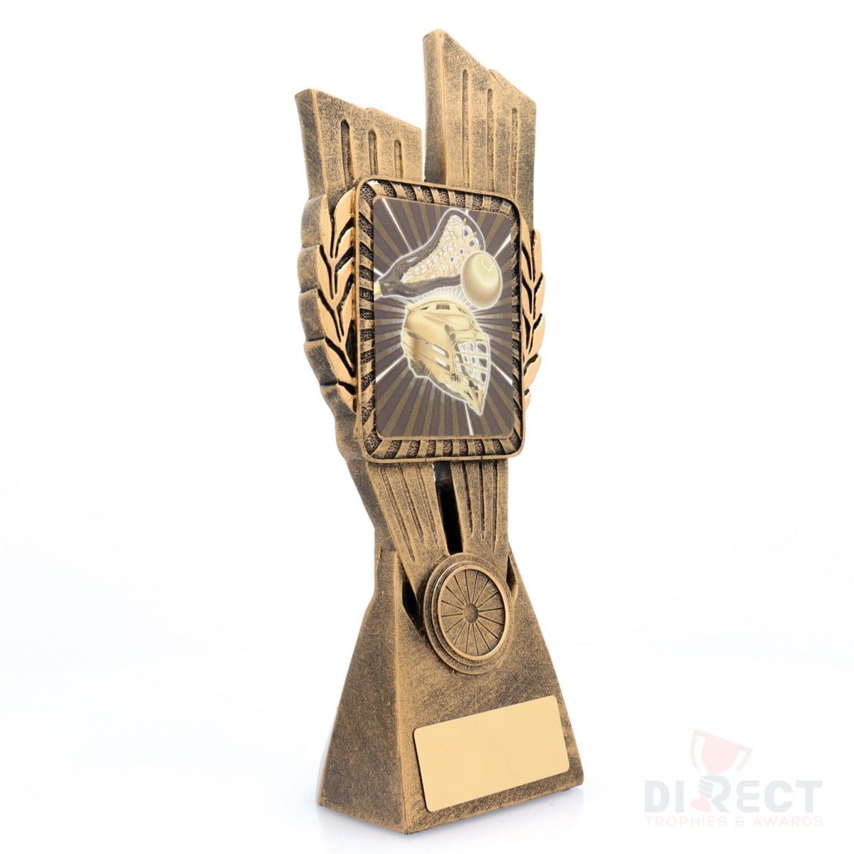 This Antique Gold Lynx Trophy is the perfect theme award for your Lacrosse team. Featuring a classic wreath and vibrant design, Lacrosse trophies are customisable and available in 4 impressive sizes.