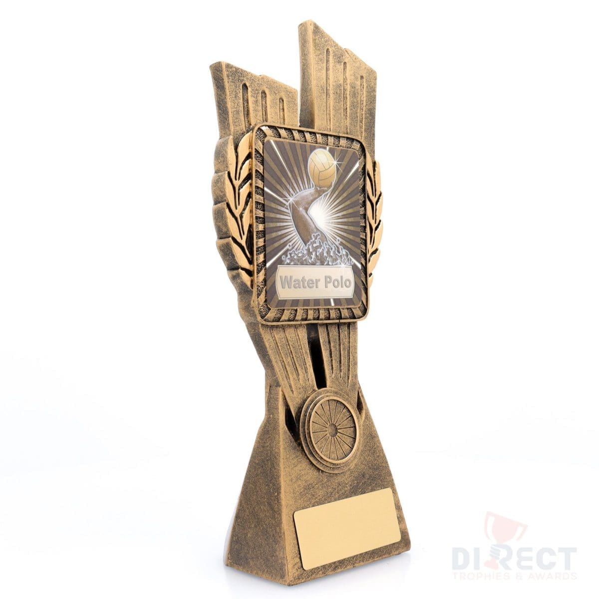 This Antique Gold Lynx Trophy is the perfect award for your Water Polo events & activities. Featuring a classic wreath and vibrant theme design, this trophy is customisable and available in 4 impressive sizes.