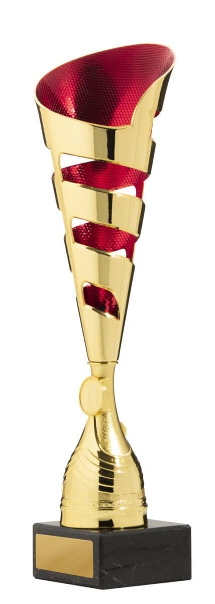 The Majorca Trophy Cup is a tall cup, made of marble and plastic. It has a cut of grill design, and is infilled with vibrant colour. It’s available in 5 sizes, and comes with a complimentary colour logo.