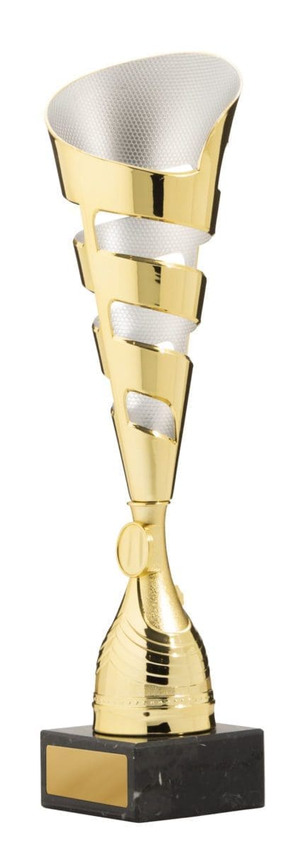 The Majorca Trophy Cup is a tall cup, made of marble and plastic. It has a cut of grill design, and is infilled with vibrant colour. It’s available in 5 sizes, and comes with a complimentary colour logo.