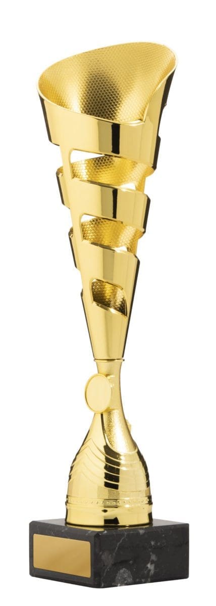 The Majorca Trophy Cup is a tall cup, made of marble and plastic. It has a cut of grill design, and is infilled with vibrant colour. It’s available in 5 sizes, and comes with a complimentary colour logo.
