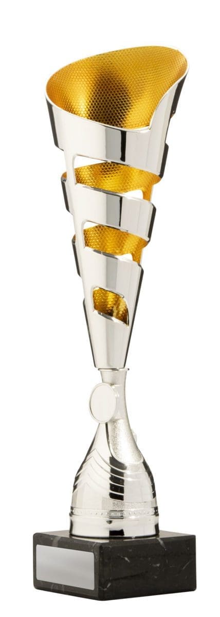 The Majorca Trophy Cup is a tall cup, made of marble and plastic. It has a cut of grill design, and is infilled with vibrant colour. It’s available in 5 sizes, and comes with a complimentary colour logo.