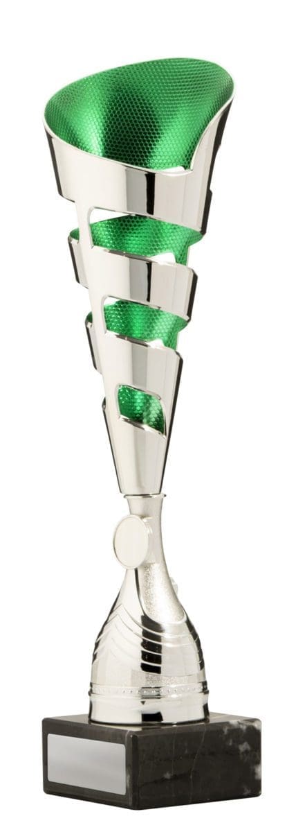The Majorca Trophy Cup is a tall cup, made of marble and plastic. It has a cut of grill design, and is infilled with vibrant colour. It’s available in 5 sizes, and comes with a complimentary colour logo.