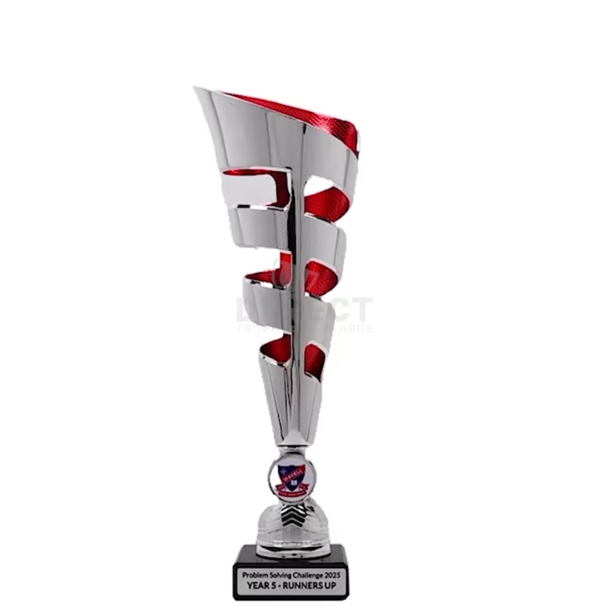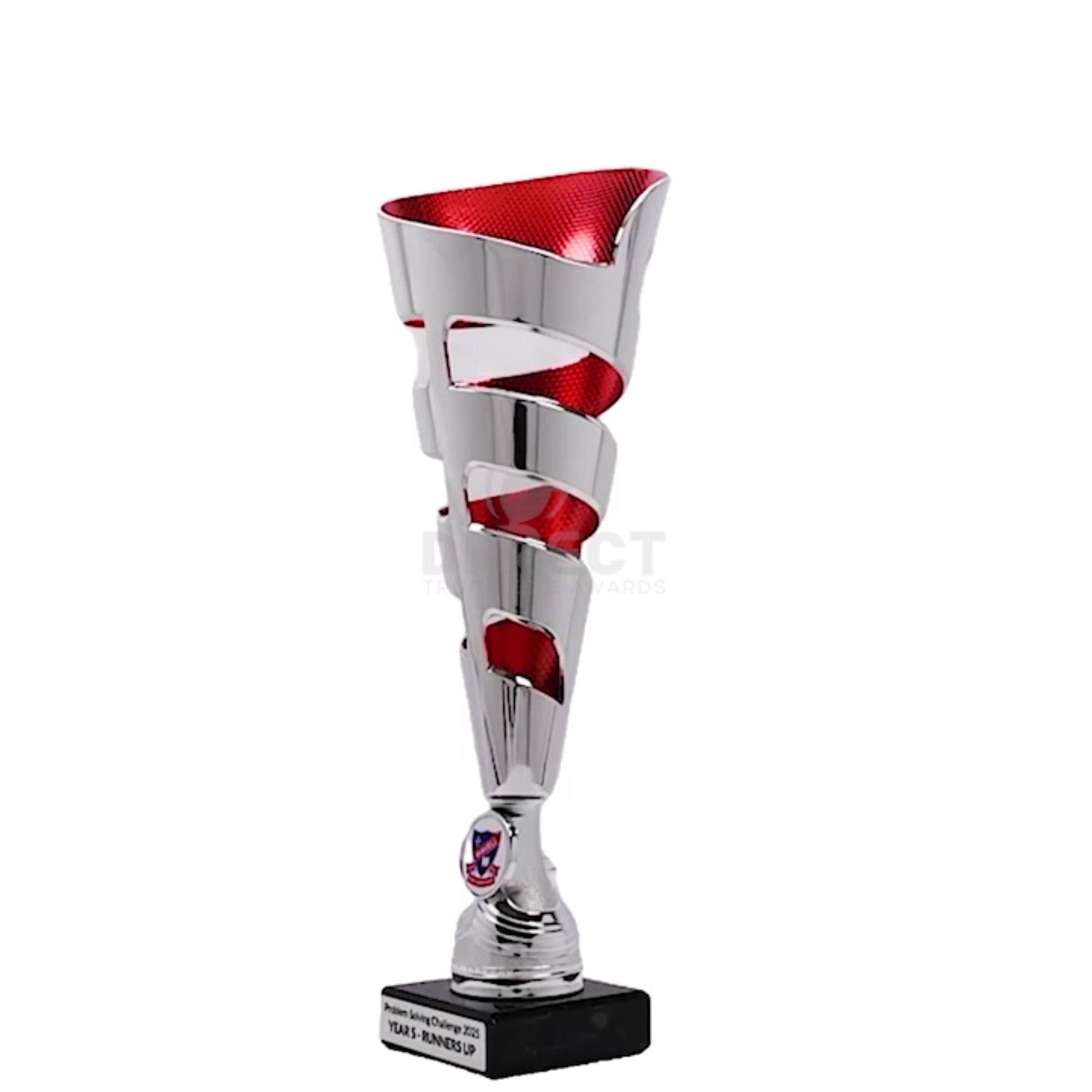 The Majorca Trophy Cup is a tall cup, made of marble and plastic. It has a cut of grill design, and is infilled with vibrant colour. It’s available in 5 sizes, and comes with a complimentary colour logo.