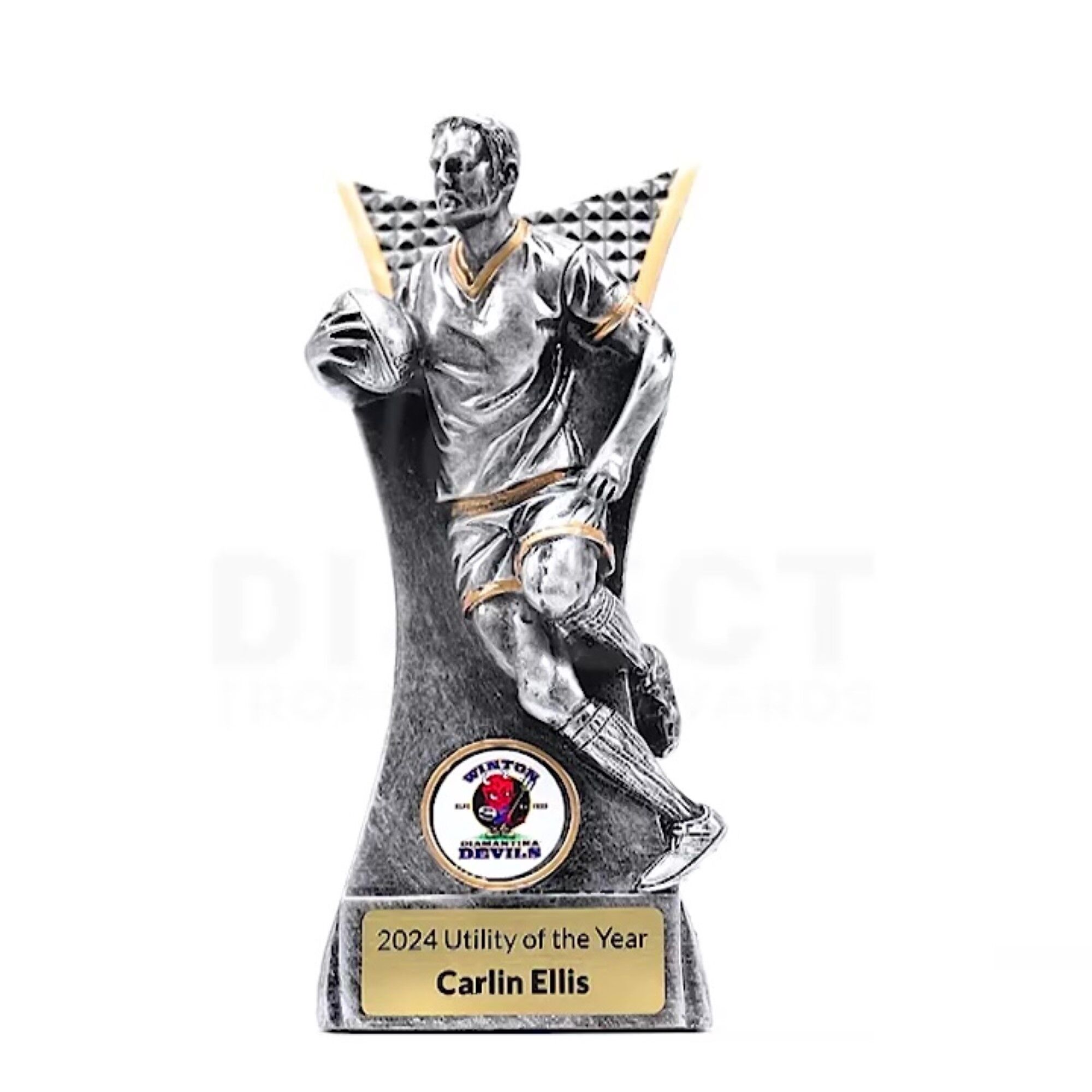 Fantastic series of trophies for your men’s and boys rugby league and union teams. Available in 6 extensive sizes – catering for many different budgets and award categories. Vanguard series presents a dynamic figure against a stylish backdrop, with space for your engraving and 25mm insert if required.