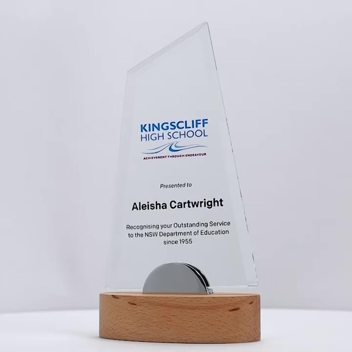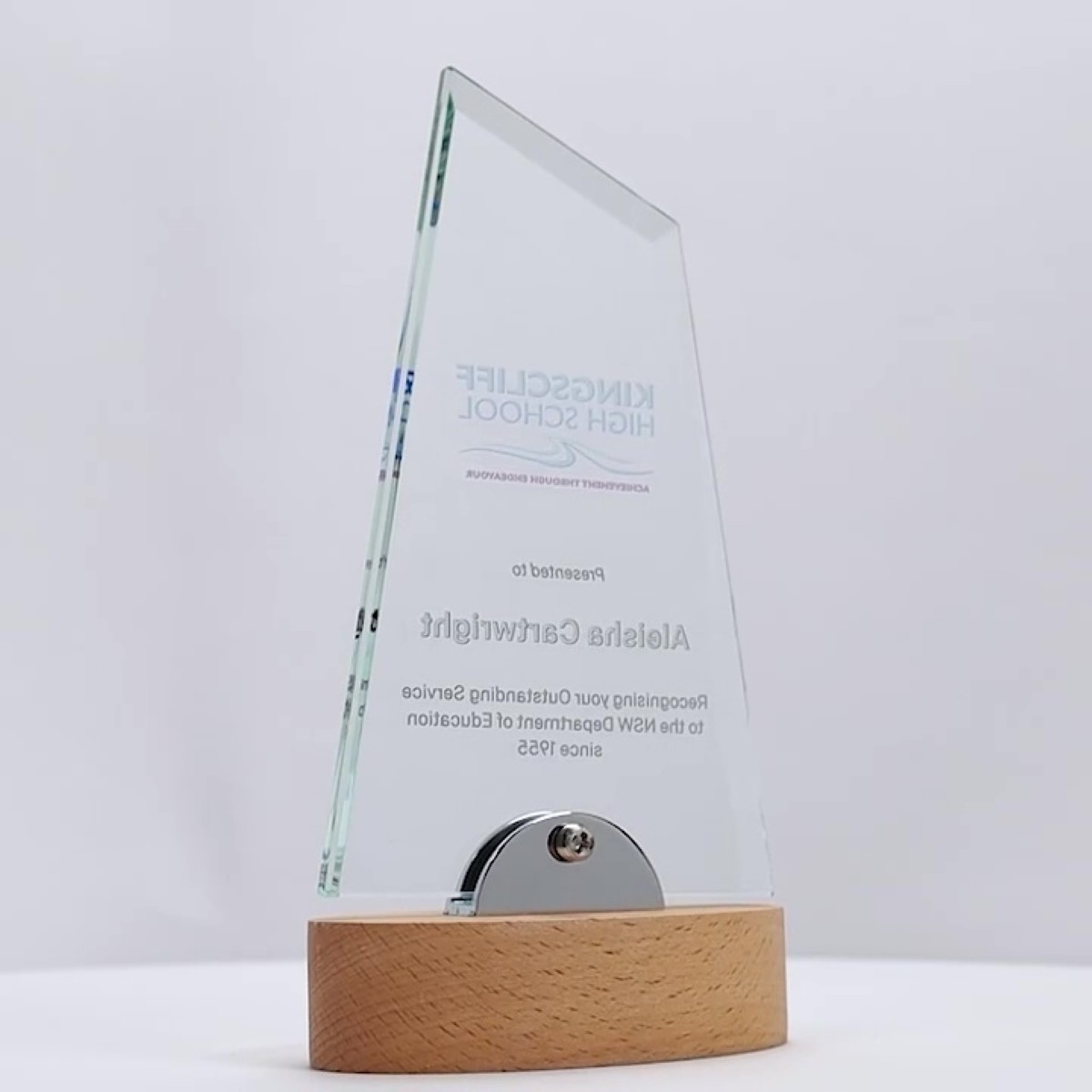 The Marita Glass Wood Trophy features a peak-inspired design that artfully combines metal and timber elements, creating an attractive and versatile award available in various sizes. This trophy offers excellent value without compromising on style. Supplied in a gift box, each piece includes full colour print to personalise your recognition.