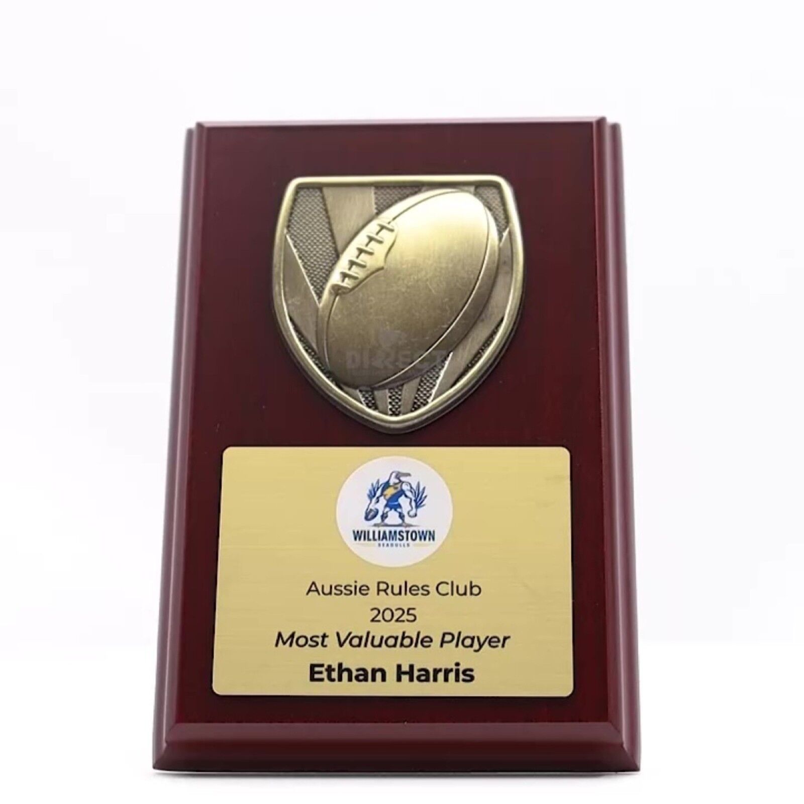 Metnox Trophy Plaque Series – Distinguished sports shield elegantly mounted on a rich rosewood plaque. Featuring a radiant antique gold crest, this award is perfect for recognising MVPs or valued participants. Gold plate can be customisable with your printed logo or image and award description.