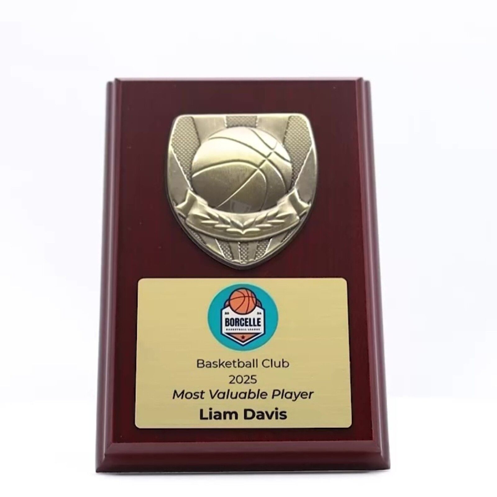 Metnox Trophy Plaque Series – Distinguished sports shield elegantly mounted on a rich rosewood plaque. Featuring a radiant antique gold crest, this award is perfect for recognising MVPs or valued participants. Gold plate can be customisable with your printed logo or image and award description.