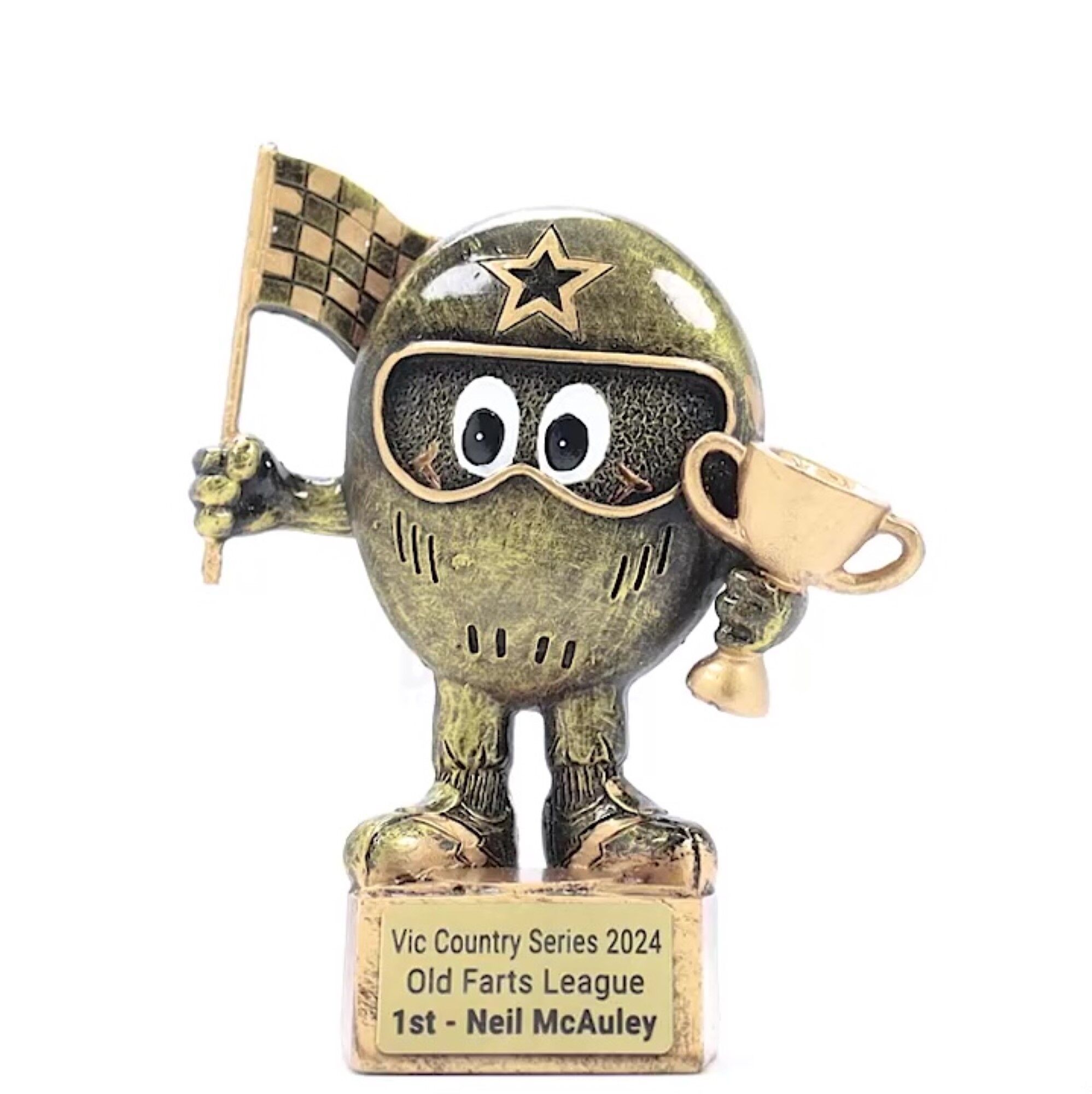 A popular and generic award choice, the Mini Character Trophy features a charming Motorsport character and is finished in a classic trophy gold colour combination.