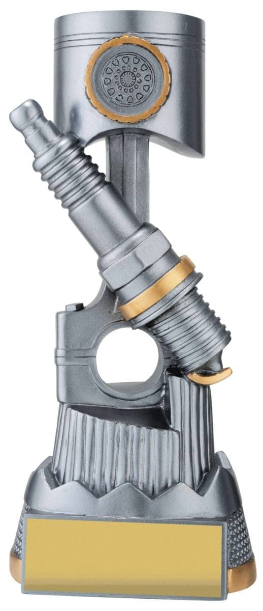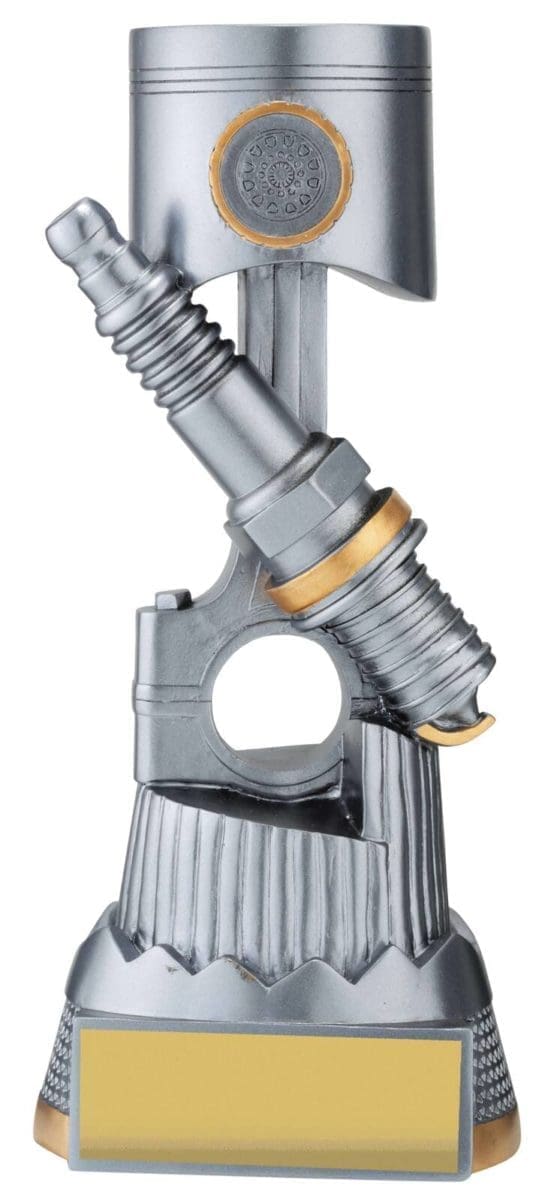 Superbly designed trophies for various Motorsport events feature the iconic piston & spark plug elements and the series is finished in a vivid ‘gun metal’ silver colour. Available in 3 excellent sizes.