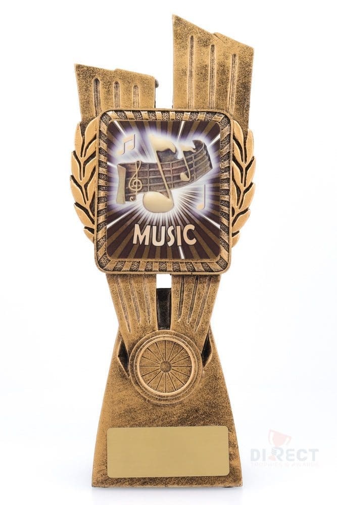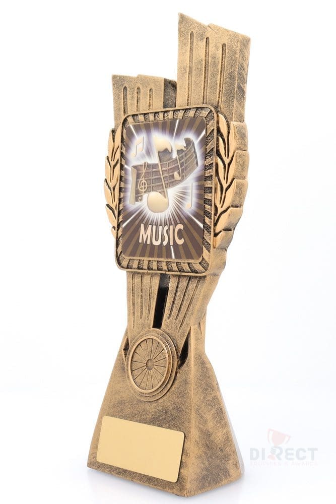 This Antique Gold Lynx Trophy is the perfect theme award for music students and musicians of all ages. Featuring a classic wreath and vibrant design, Music trophies are customisable and available in 4 impressive sizes.
