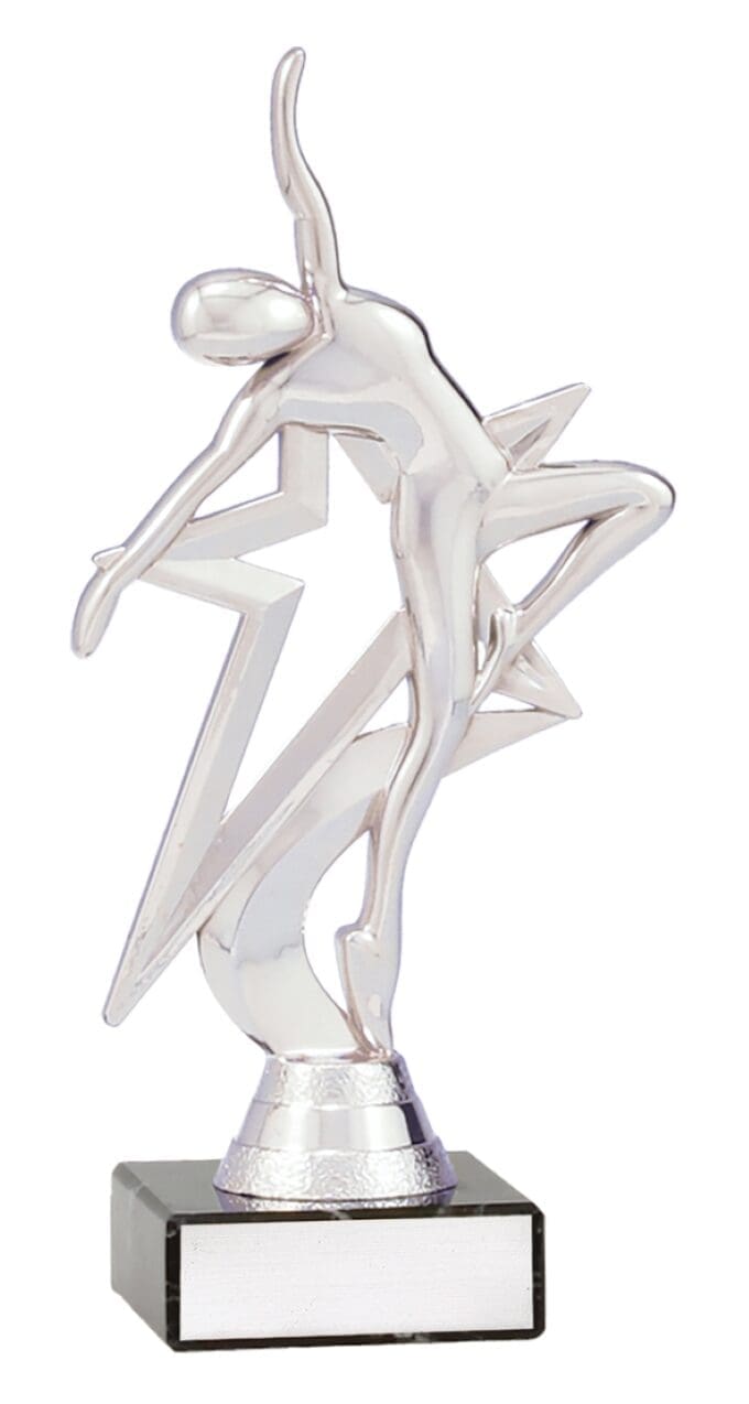 Introducing the Neoasis Dance Trophy Series: These dazzling dance trophies feature a captivating abstract dancing figure top, reminiscent of electrifying Vegas performances. With a vibrant, bright silver finish, they add a touch of glamour to any occasion. Resting on a sleek black marble base, they exude elegance and style. Enjoy the added bonus of Free Laser Engraving and celebrate the extraordinary talent of dancers with the Neoasis Dance Trophy Series.