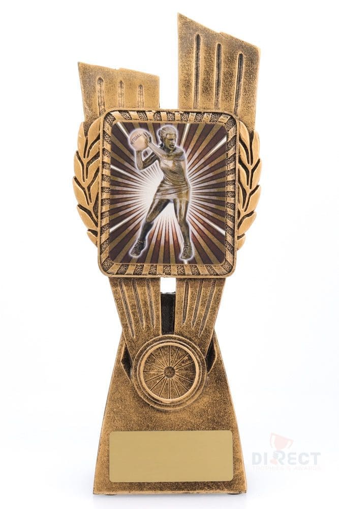 This Antique Gold Lynx Trophy is the perfect theme award for players of all ages. Featuring a classic wreath and vibrant netball player design, this trophy is customisable and available in 4 impressive sizes.