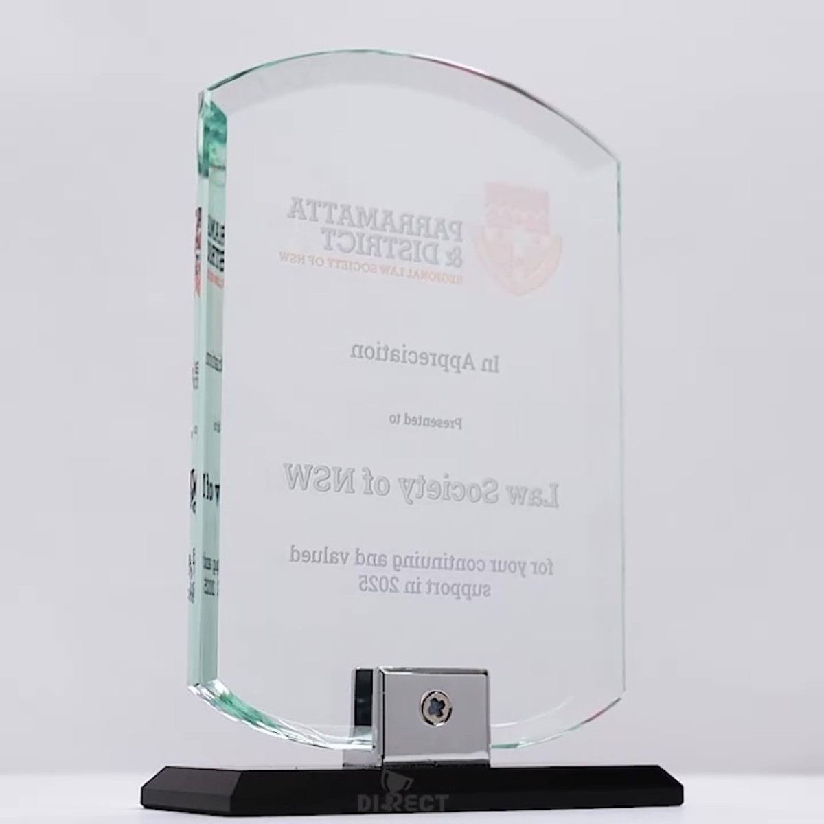 The Nocta Glass Trophy features a sleek design with a generous surface area to prominently display your message of recognition. Complemented by a stylish metal base, this award combines elegance with excellent value and versatile customisation options. Delivered in a gift box, each trophy includes full colour print to personalise and enhance its presentation.