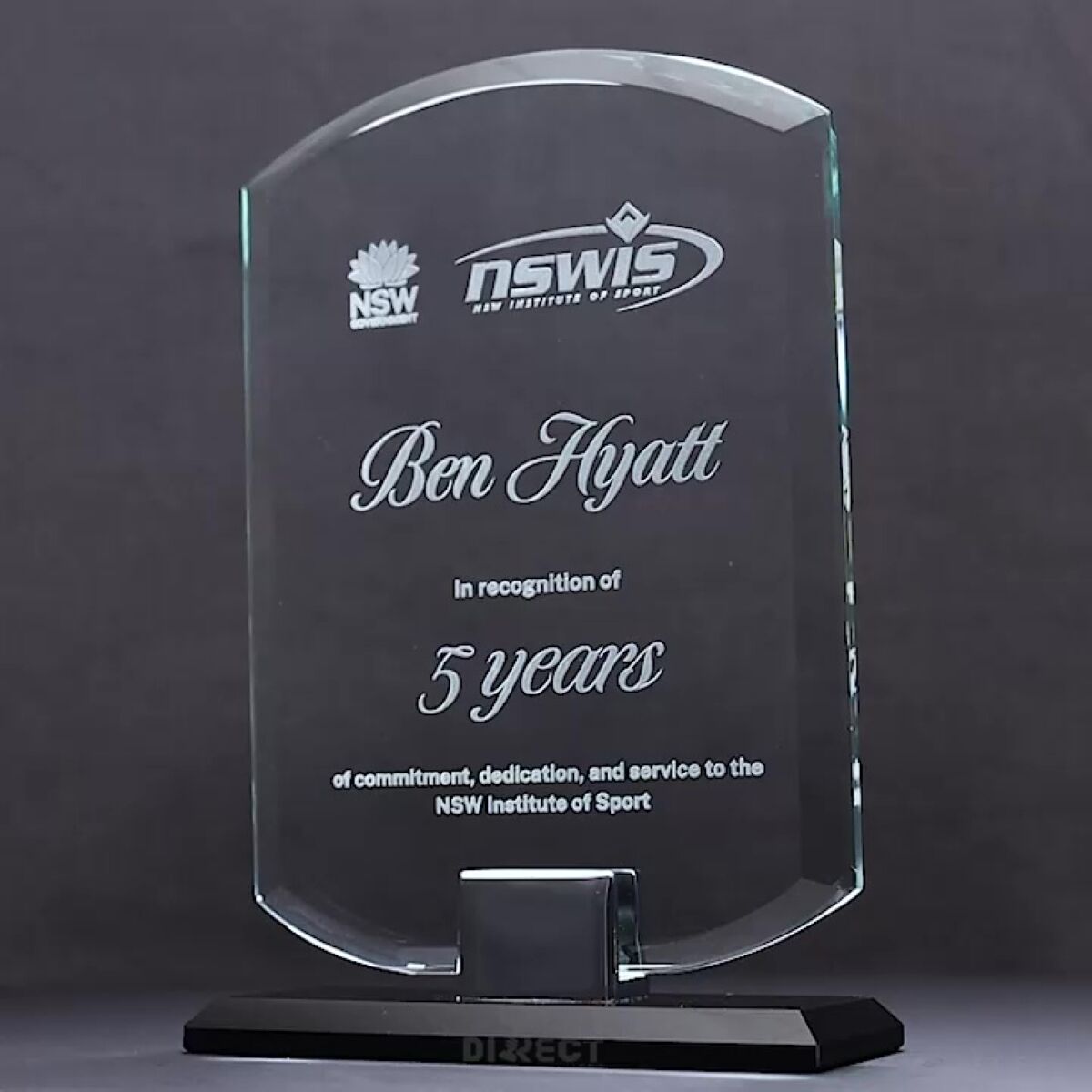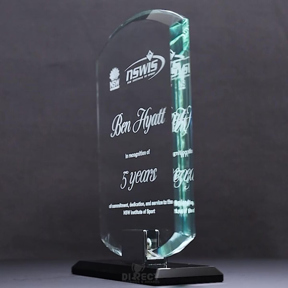 The Nocta Glass Trophy features a sleek design with a generous surface area to prominently display your message of recognition. Complemented by a stylish metal base, this award combines elegance with excellent value and versatile customisation options. Delivered in a gift box, each trophy includes laser engraving to personalise and enhance its presentation.