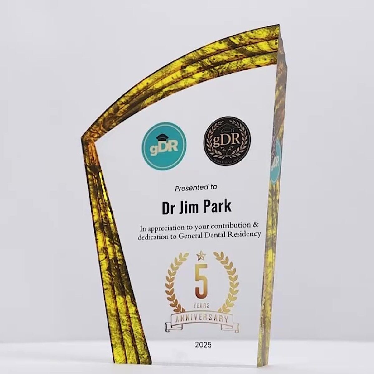 Features striking acrylic awards with vibrant, multi-coloured accents. Designed with generous areas for customisation, each piece is delivered in an elegant gift box and includes full colour print.