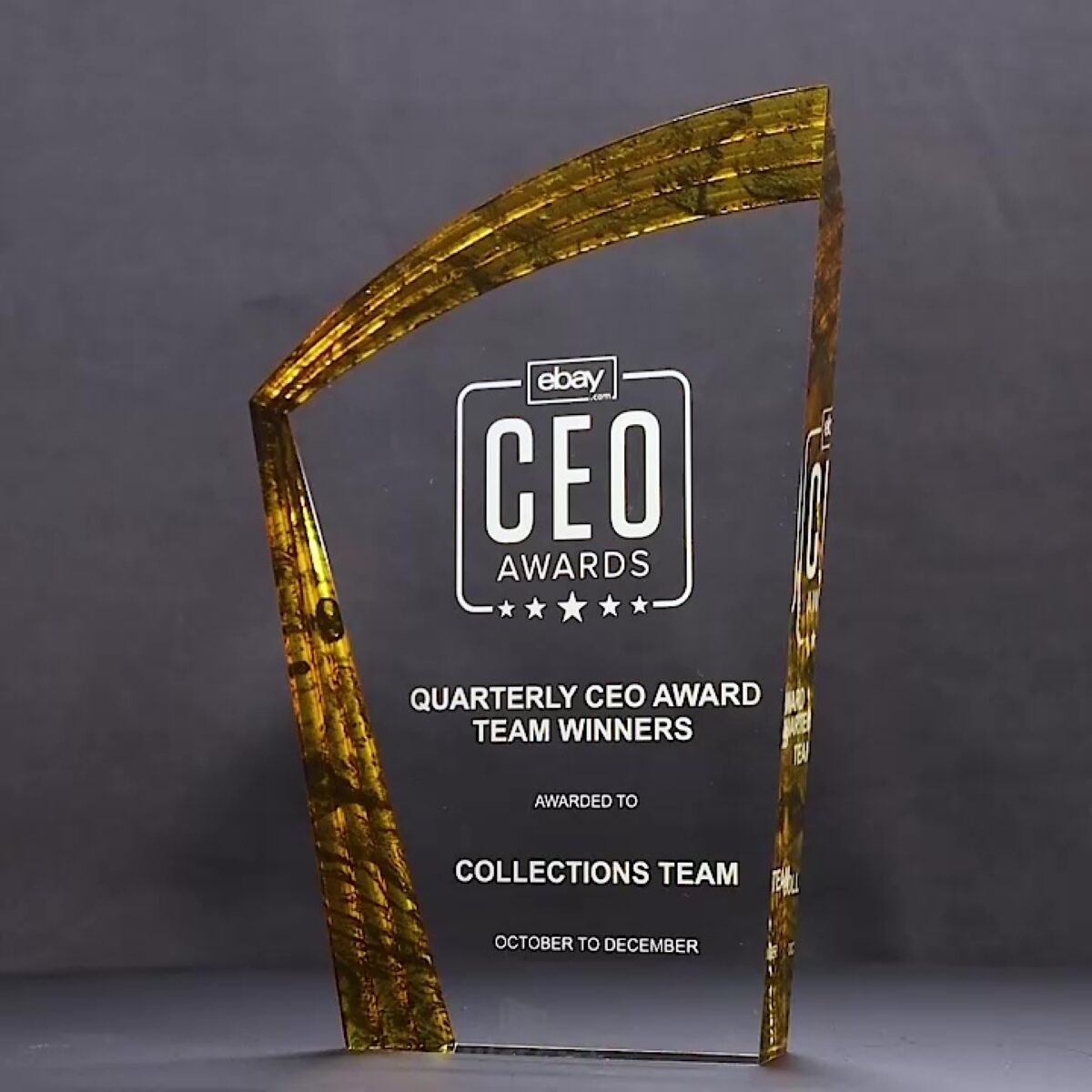 Features striking acrylic awards with vibrant, multi-coloured accents. Designed with generous areas for customisation, each piece is delivered in an elegant gift box and includes precision laser engraving.
