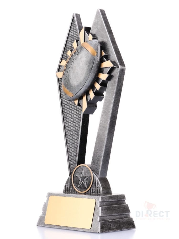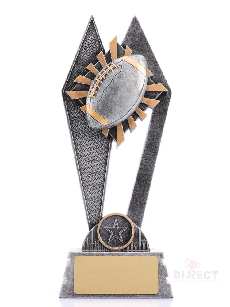 The Peak Series is an innovative set of trophies offering super value for such an impressive size range. An elevated design that showcases the American Football against vibrant sunray background. Available in 3 sizes.