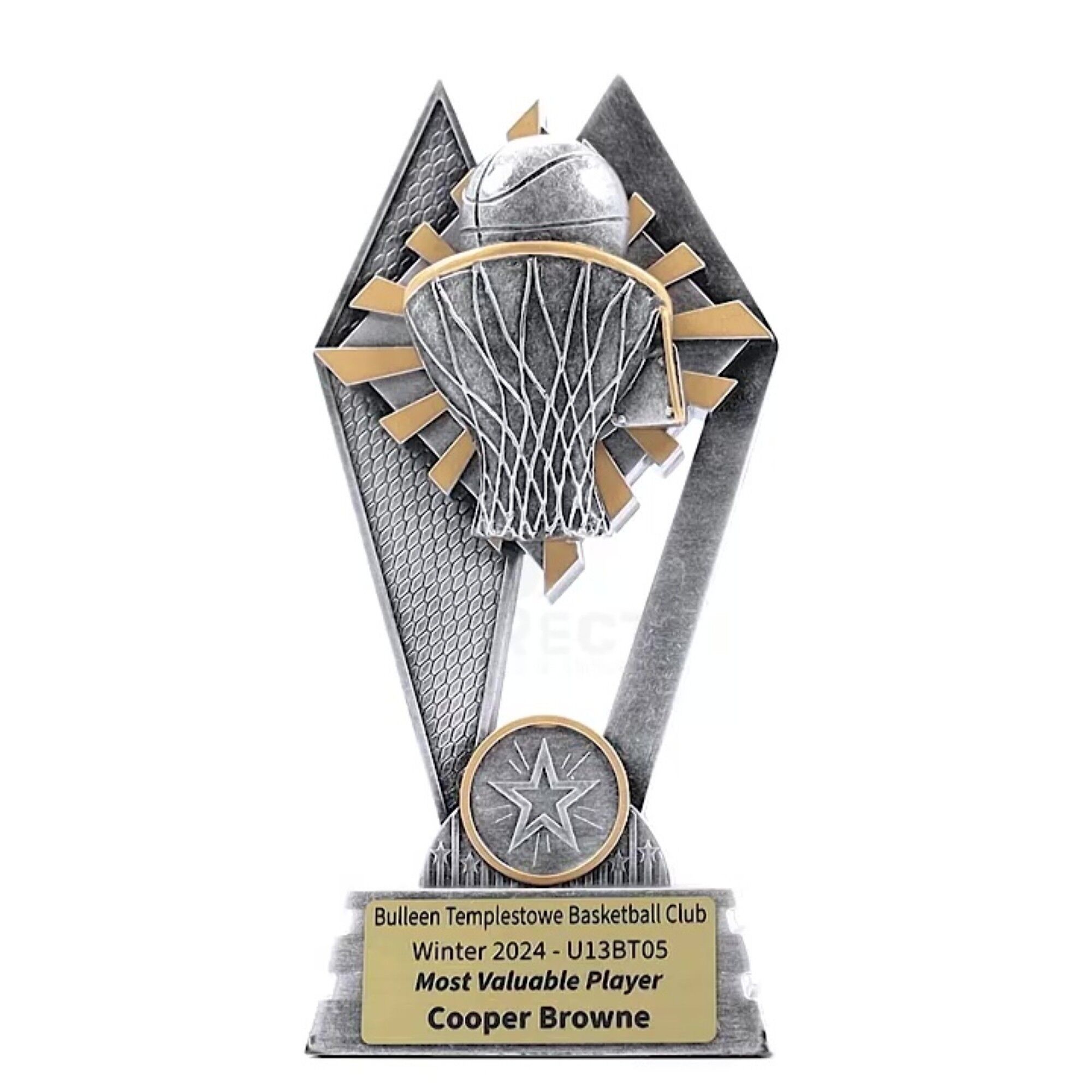 The Peak Series is an innovative set of trophies offering super value for such an impressive size range. An elevated design that showcases a stylish basketball theme versatile for boys and girls events. Available in 3 sizes.