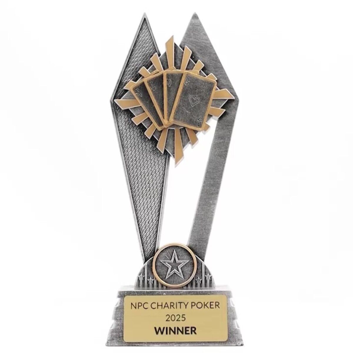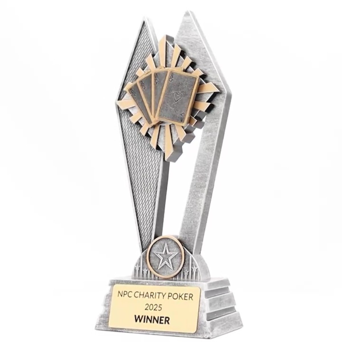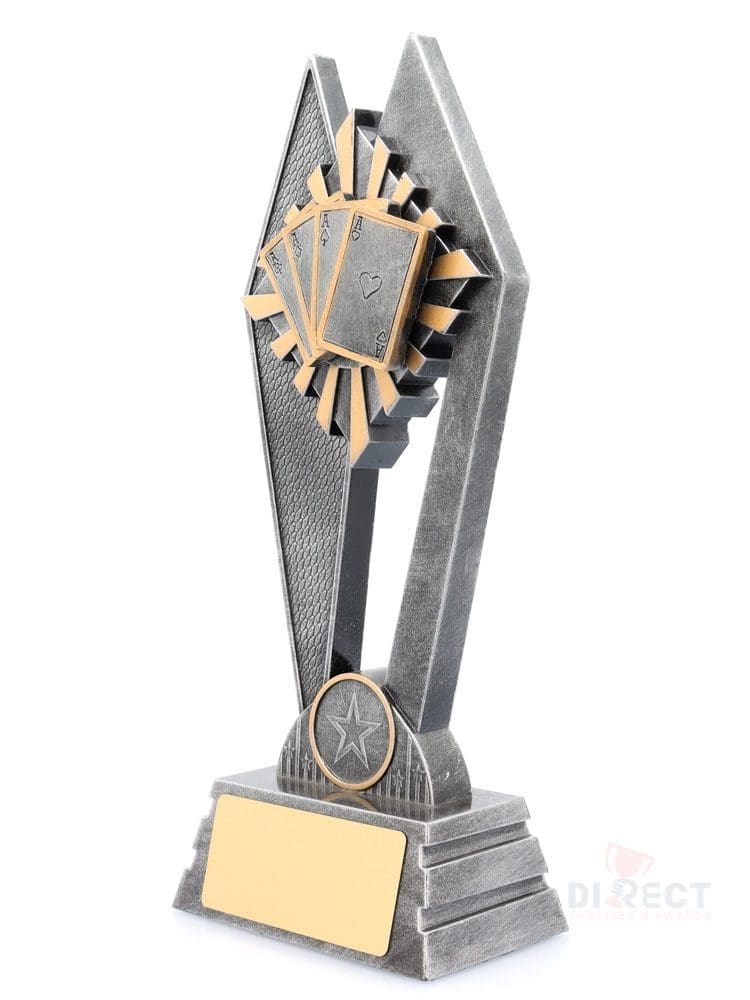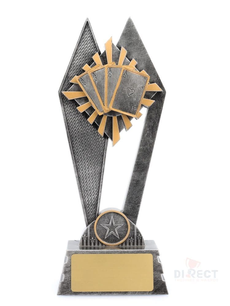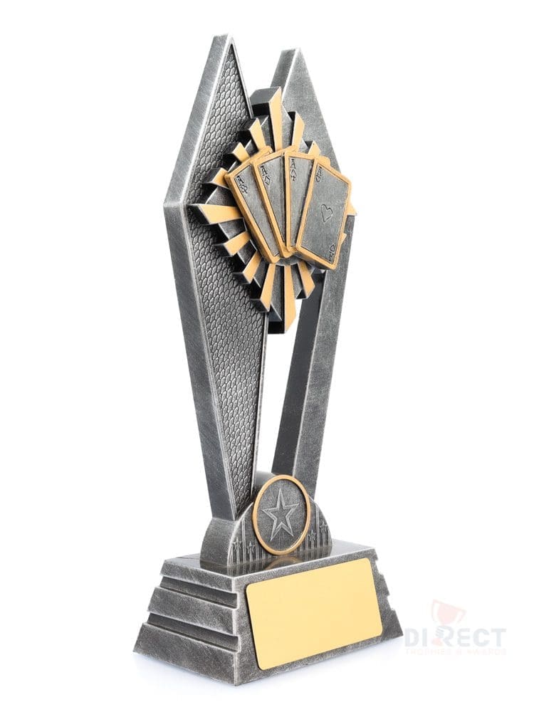 The Peak Series is an innovative set of trophies offering super value for such an impressive size range. An elevated design that features a universal theme useful for various card playing activities. Available in 3 sizes.