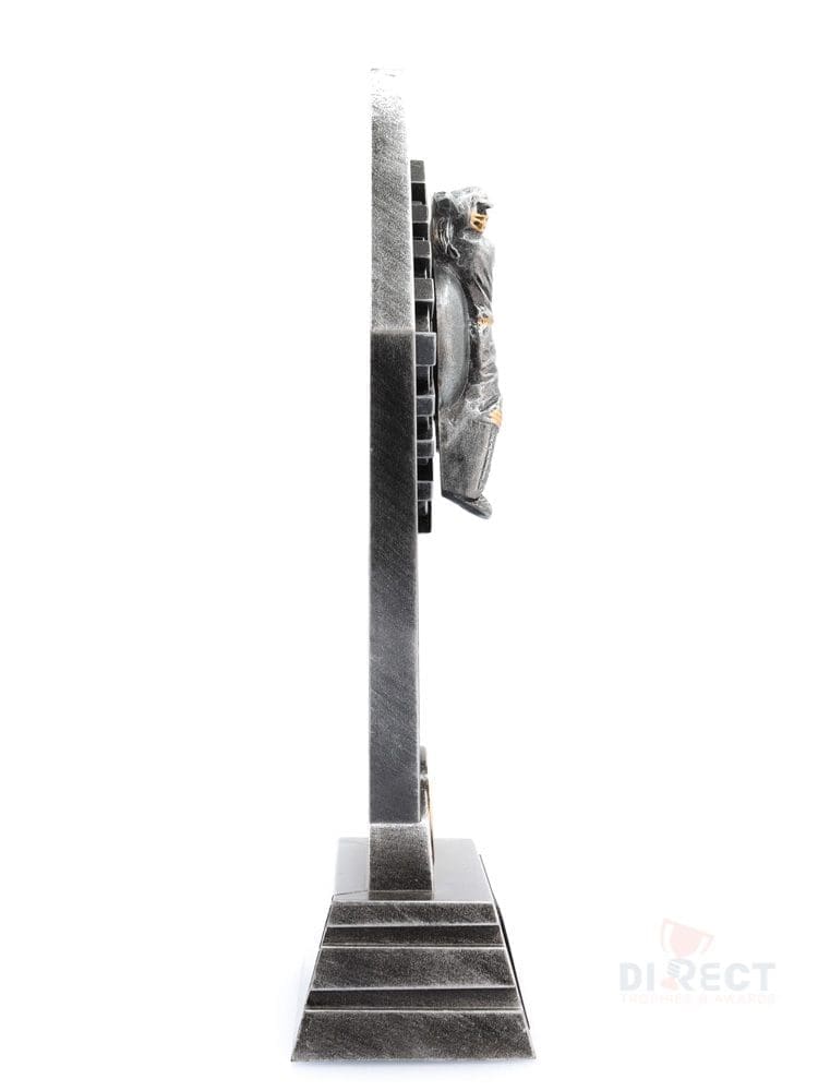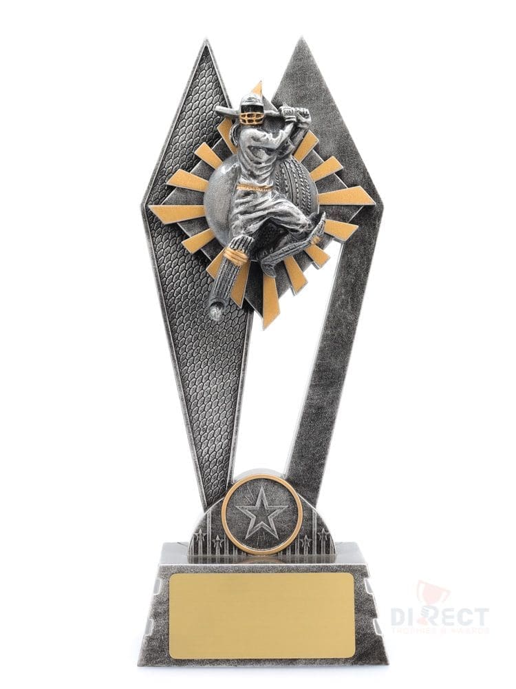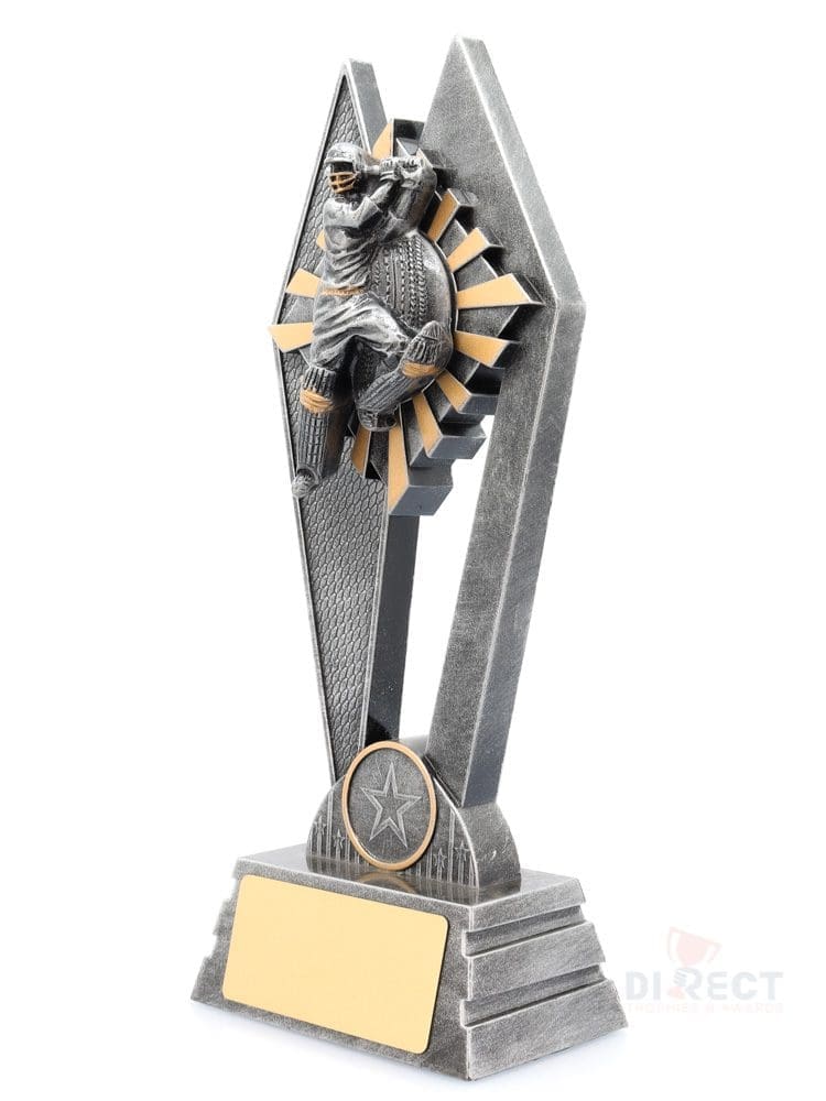 The Peak Series – for Cricket – is an innovative trophy series offering super value for such an impressive size range. An elevated design that showcases a female batsman theme against a vibrant sunray style background.