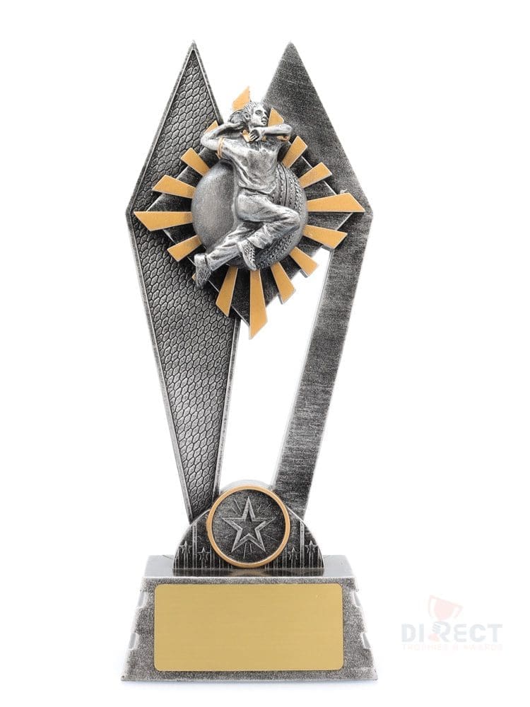 The Peak Series – for Cricket – is an innovative trophy series offering super value for such an impressive size range. An elevated design that showcases a female bowler theme against a vibrant sunray style background.