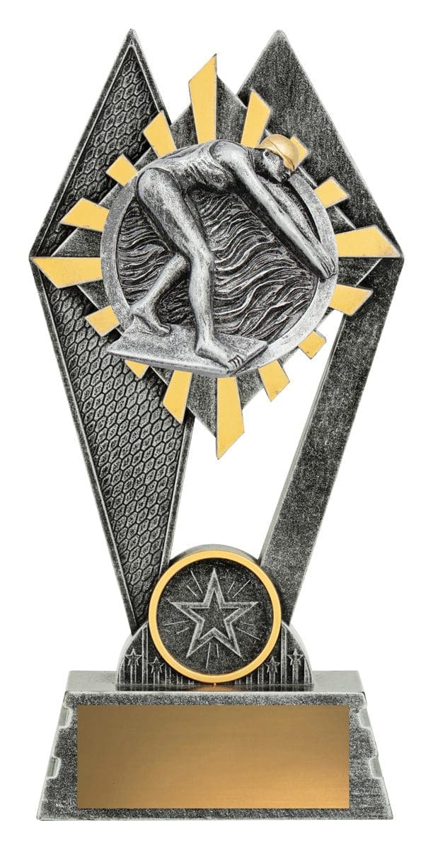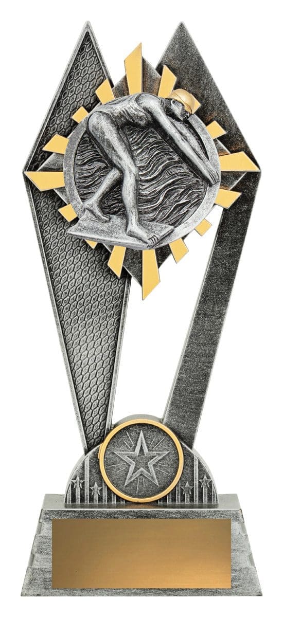 The Peak Series is an innovative trophy series offering super value for such an impressive size range. An elevated design that showcases a classic pose for Swimming against a vibrant sunray background.
