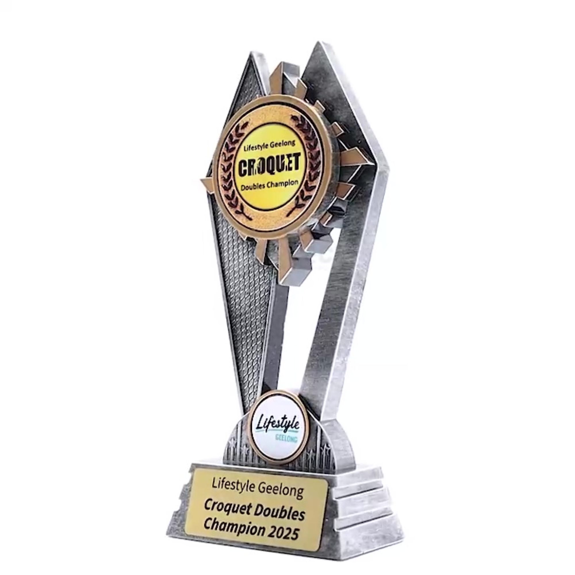 The Peak Series – generic design for your insert – is an innovative trophy series offering super value for such an impressive size range. An elevated design that showcases a 25 or 50mm insert against a vibrant sunray style background. Check out the Peak design in your sport or activity. Available in 3 sizes.