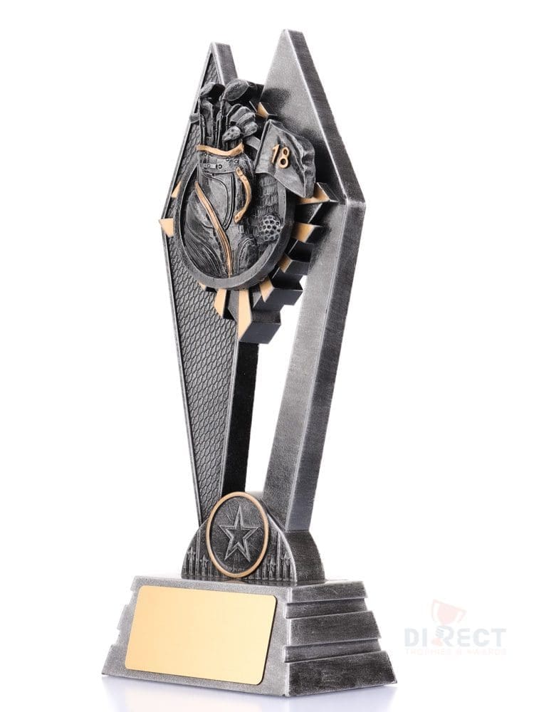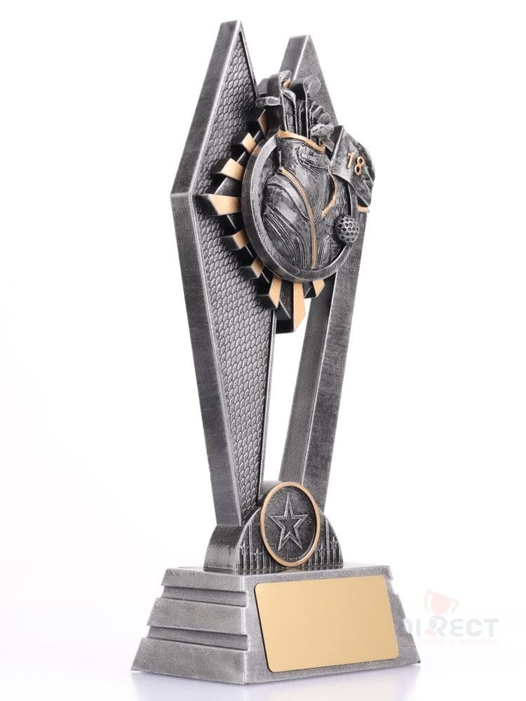 The Peak Series – for Golf – is an innovative trophy series offering super value for such an impressive size range. An elevated design that showcases the iconic golf bag, ball and pin elements against a vibrant sunray style background. Check out the Peak design in your sport or activity.