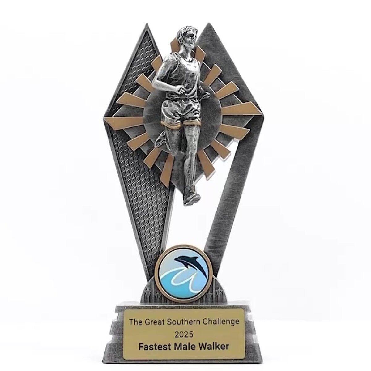 The Peak Series is an innovative trophy series offering super value for such an impressive size range. An elevated design that showcases a male runner against a vibrant sunray background.
