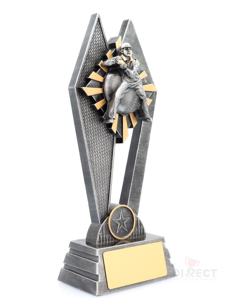 The Peak Series – for Cricket – is an innovative trophy series offering super value for such an impressive size range. An elevated design that showcases a male fielder theme against a vibrant sunray style background.