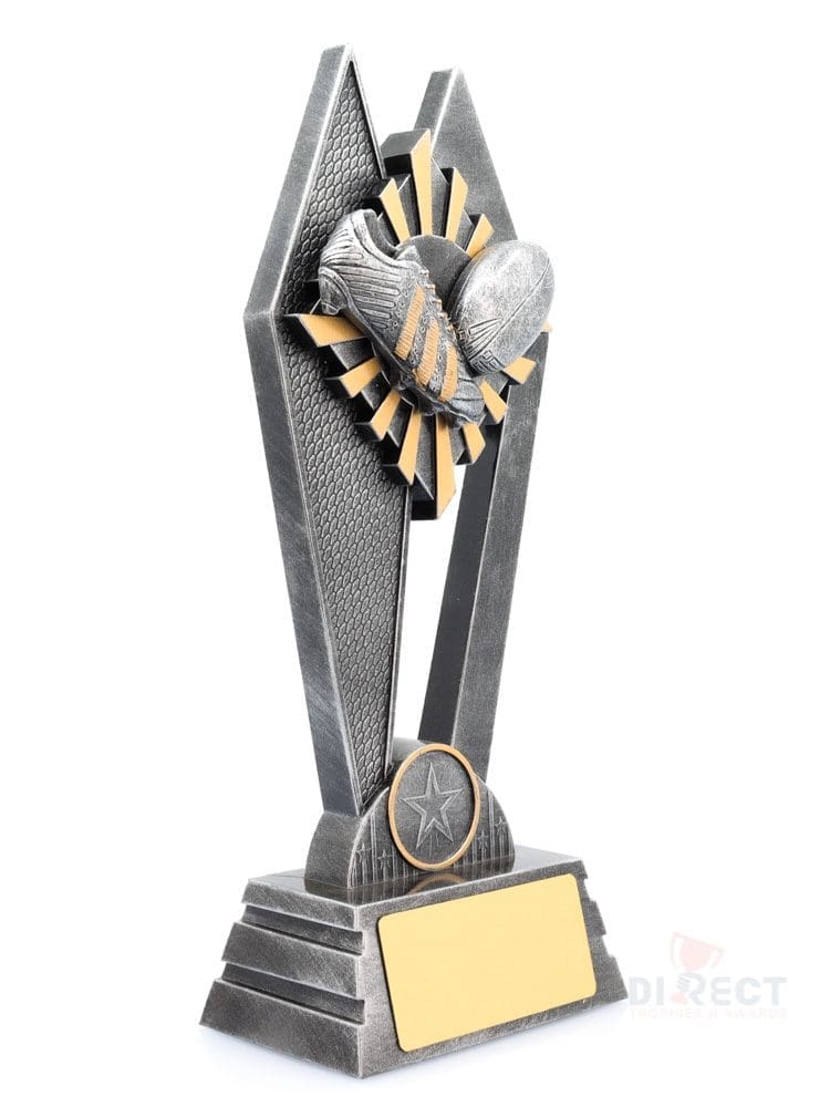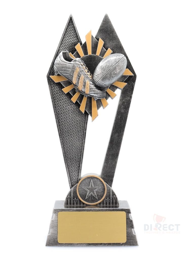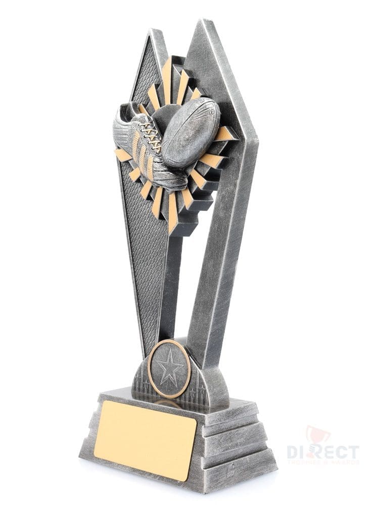 The Peak Series – for Rugby League and Union – is an innovative trophy series offering super value for such an impressive size range. An elevated design that showcases the iconic boot & ball elements against a vibrant sunray style background. Check out the Peak design in your sport or activity.