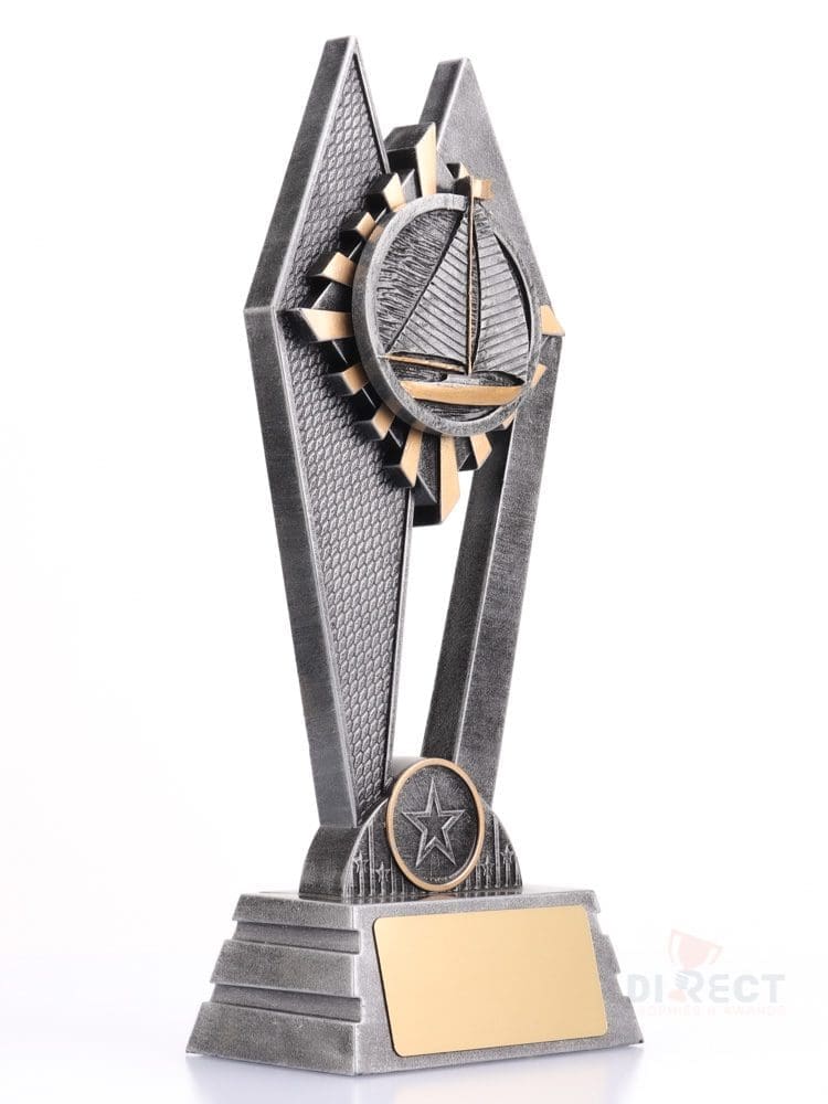 The Peak Series is an innovative set of trophies offering super value for such an impressive size range. An elevated design that features an attractive sailing inspired theme on vibrant sunray background. Available in 3 sizes.