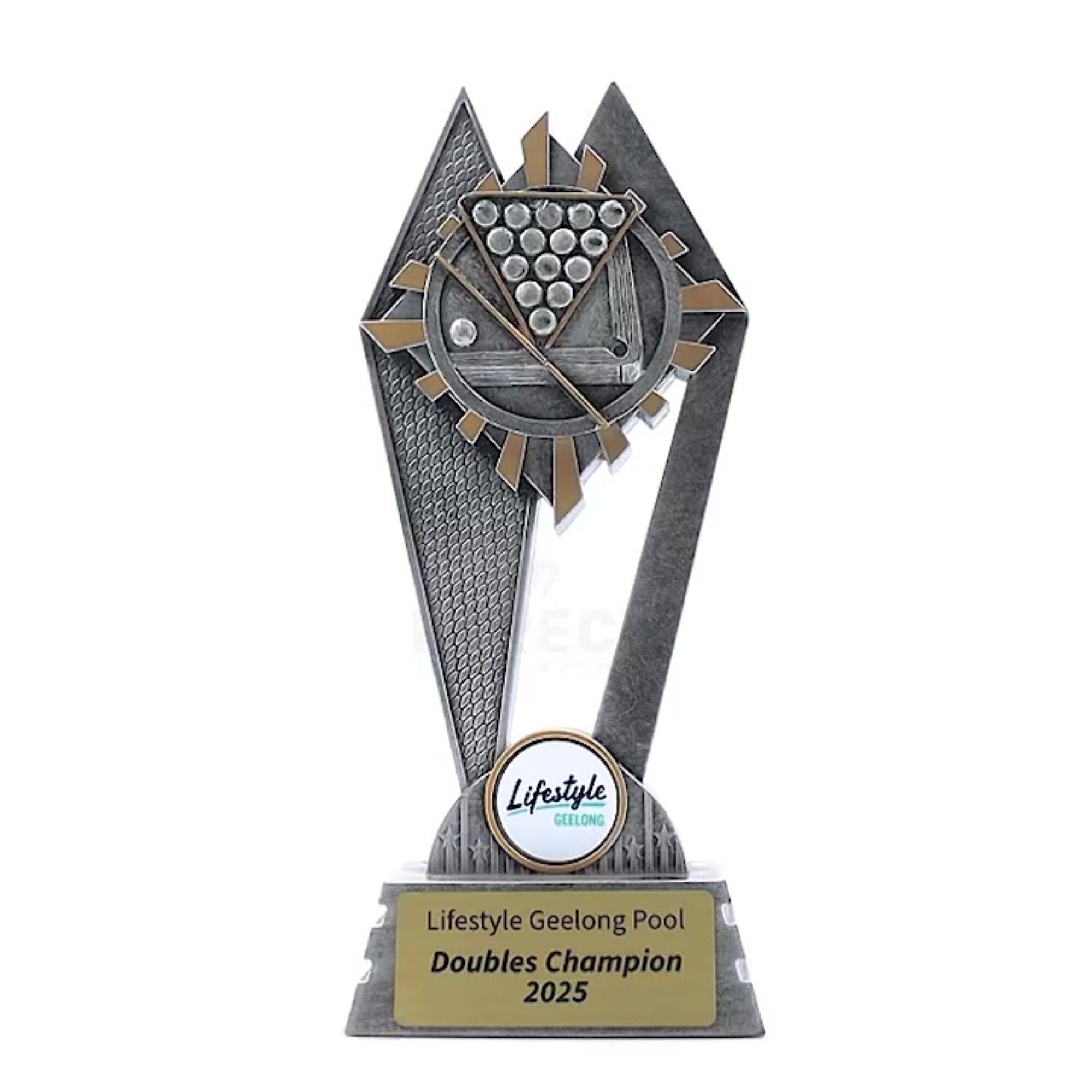 The Peak Series is an innovative set of trophies offering super value for such an impressive size range. An elevated design that showcases a stylish theme that can be used for Pool or Snooker events. Available in 3 sizes.