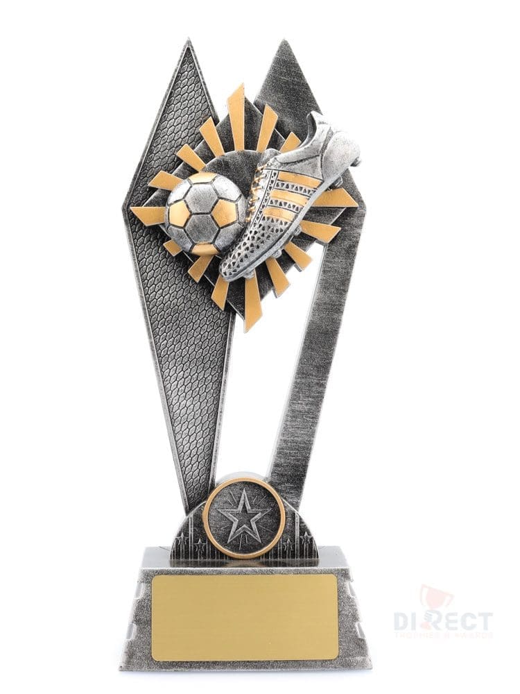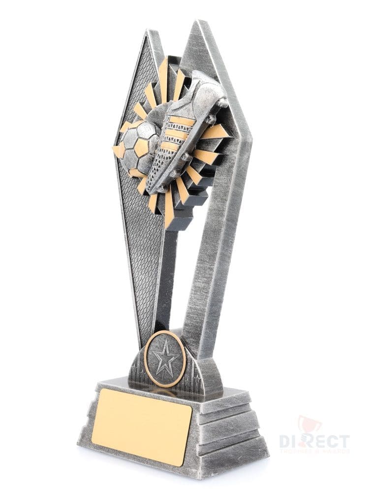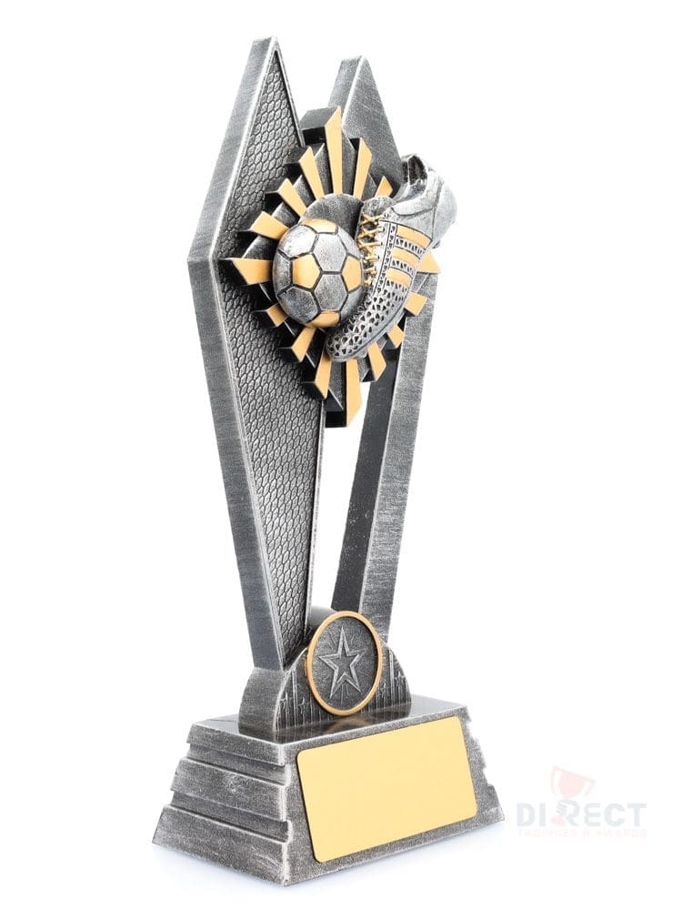 The Peak Series – for Soccer – is an innovative series of trophies offering super value for such an impressive size range. An elevated design that showcases the football boot & ball elements against a vibrant sunray style background. Check out the Peak design of trophies in your sport or activity.