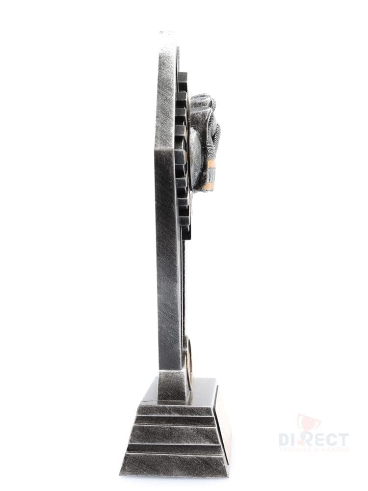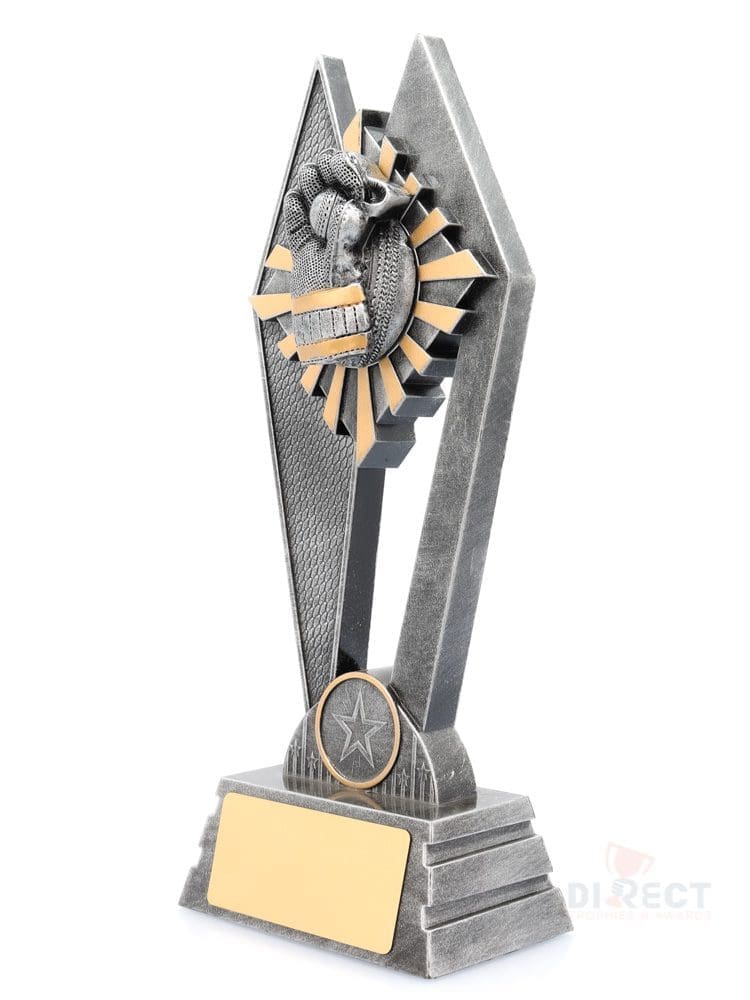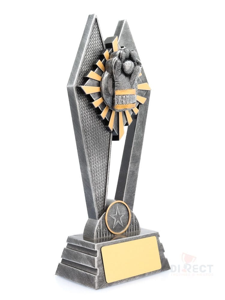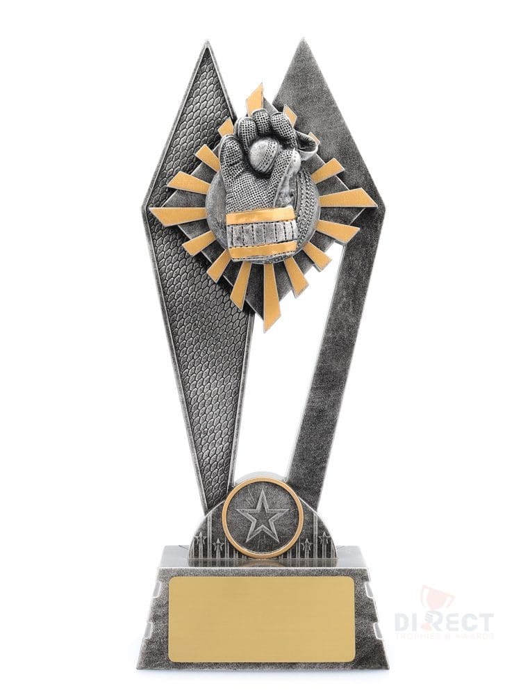 The Peak Series – for Cricket – is an innovative trophy series offering super value for such an impressive size range. An elevated design that showcases a brilliant wicketkeeper theme against a vibrant sunray style background.